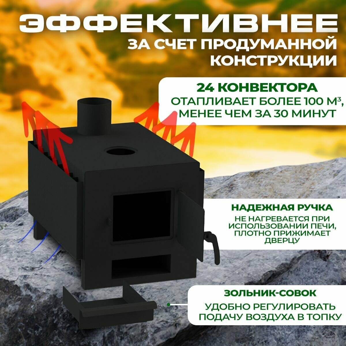 Печь печьмастер "Комфорт-100", 3мм, 100м³