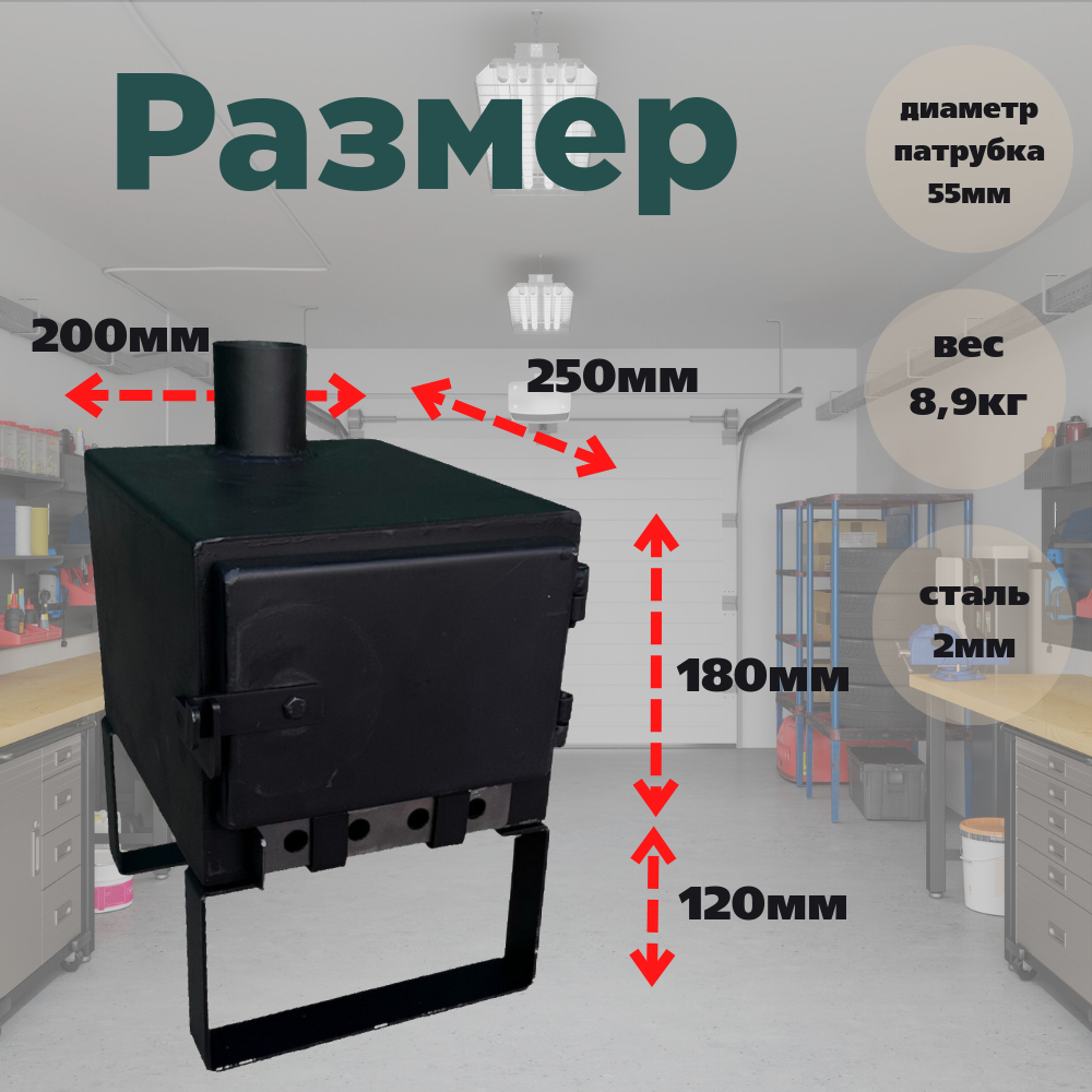 Печь дровяная, мини буржуйка для палатки, 25х20х18 см, сталь 2 мм. интересное: