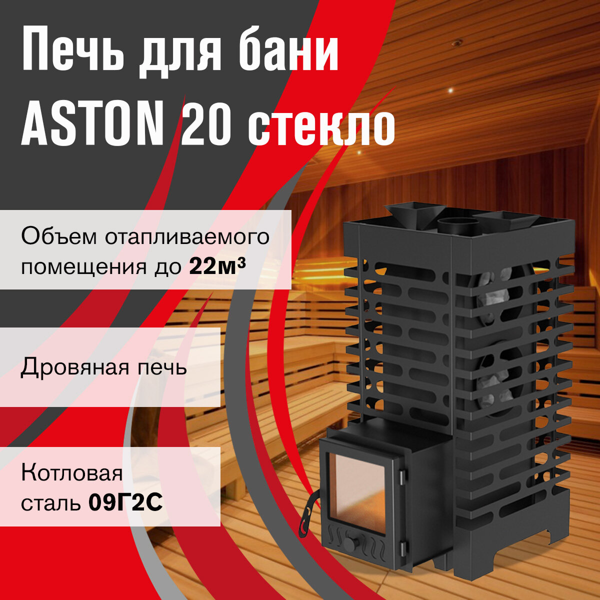 Банная печь ASTON 20 стекло