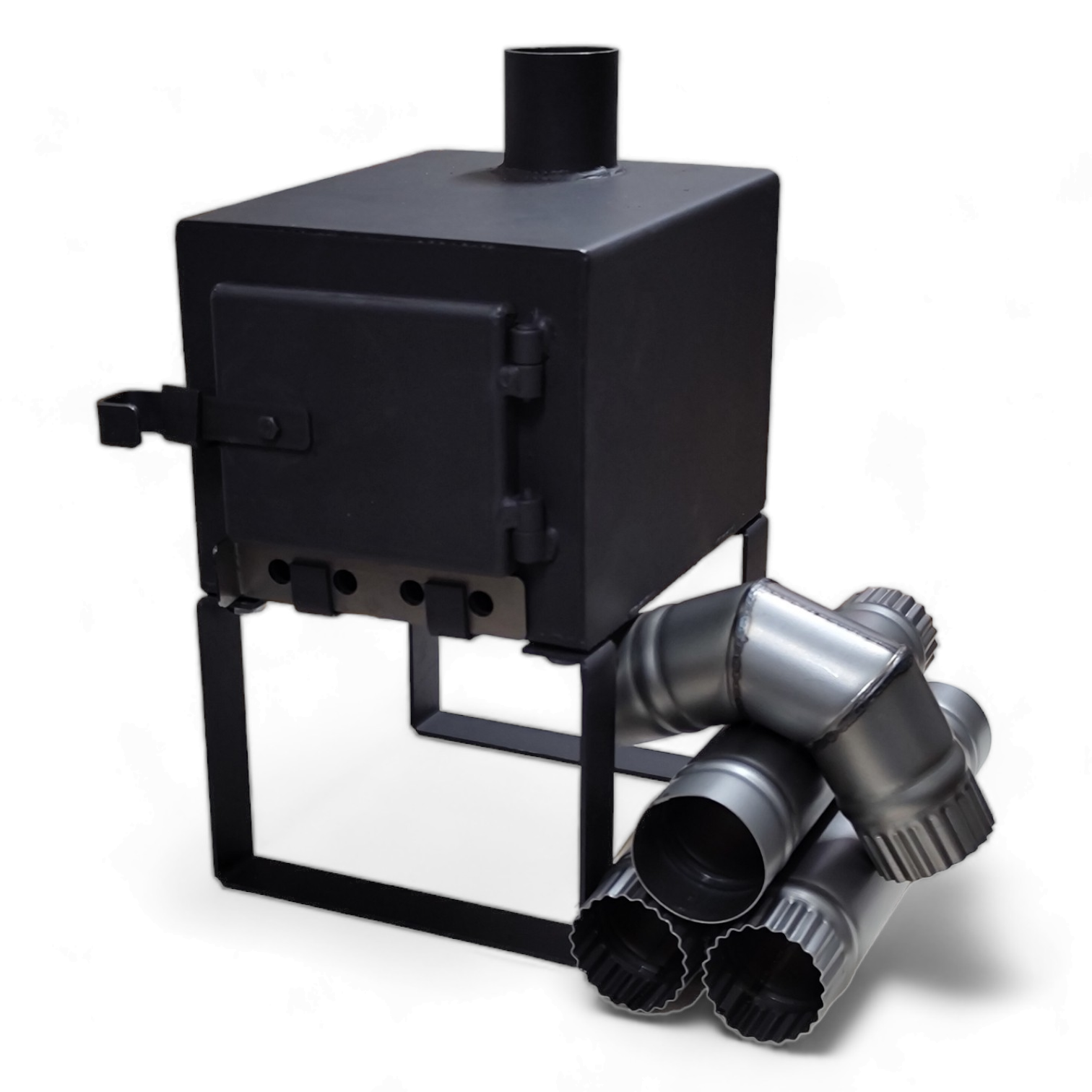 Купить Мини буржуйка для палатки, 25х20х18 см, сталь 2 мм, с тремя трубами и отводом 60 мм