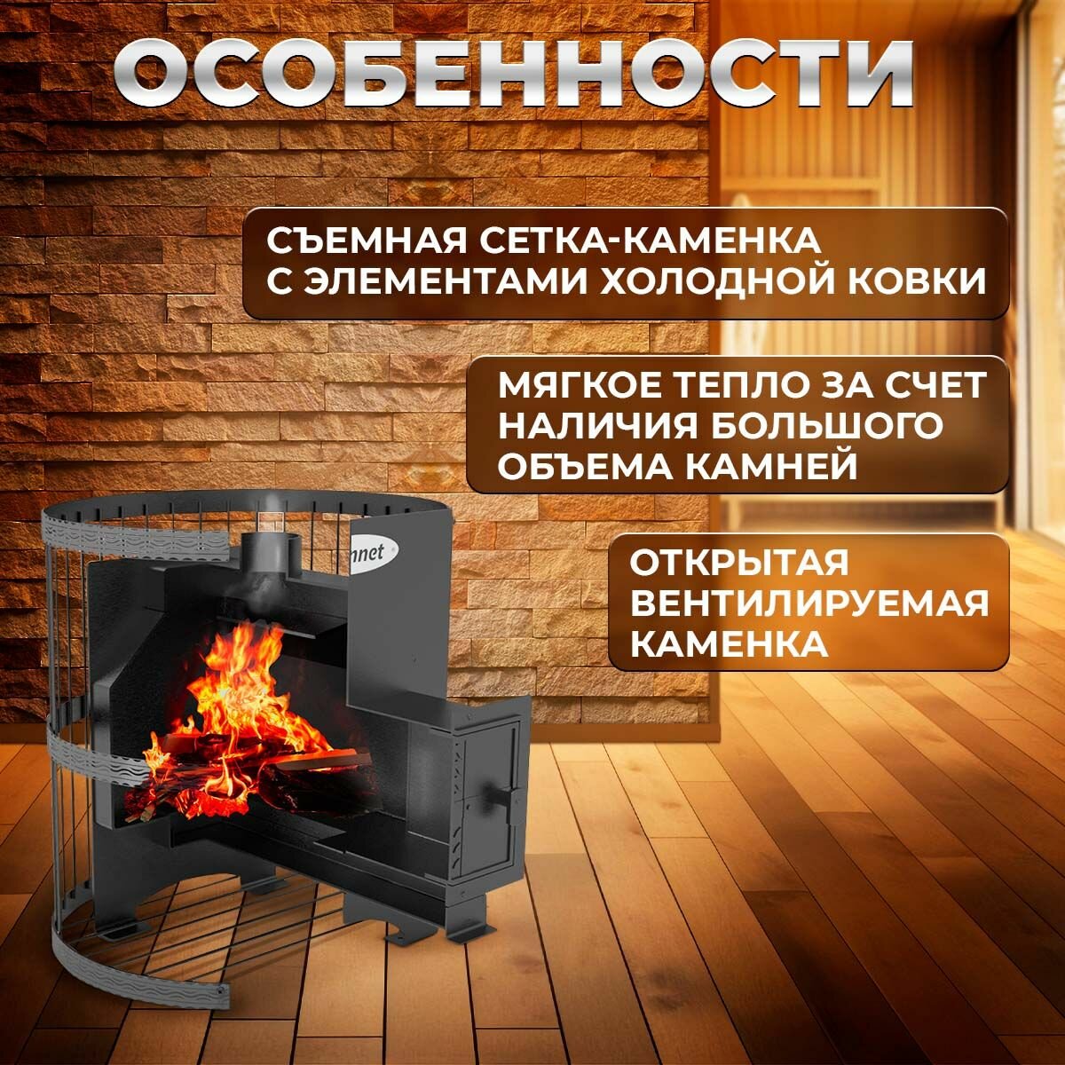 Печь банная Кеннет Оптима 14 сетка,цвет черный (сталь, до 14 куб.м)(Масса закладываемых камней 110 кг)