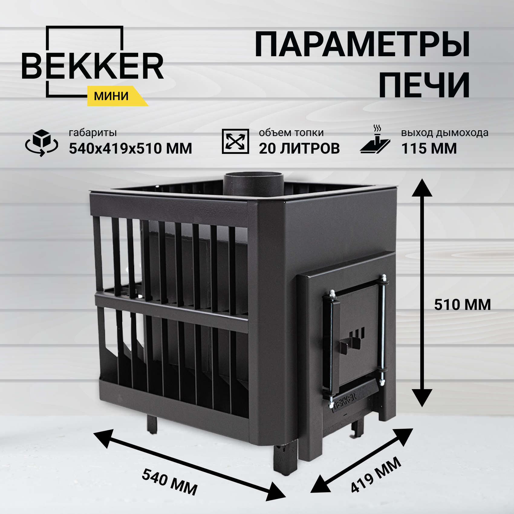 Печь банная BEKKER - Мини (3 мм), короткое горло, конвекция, глухая дверца, печь дровяная для бани