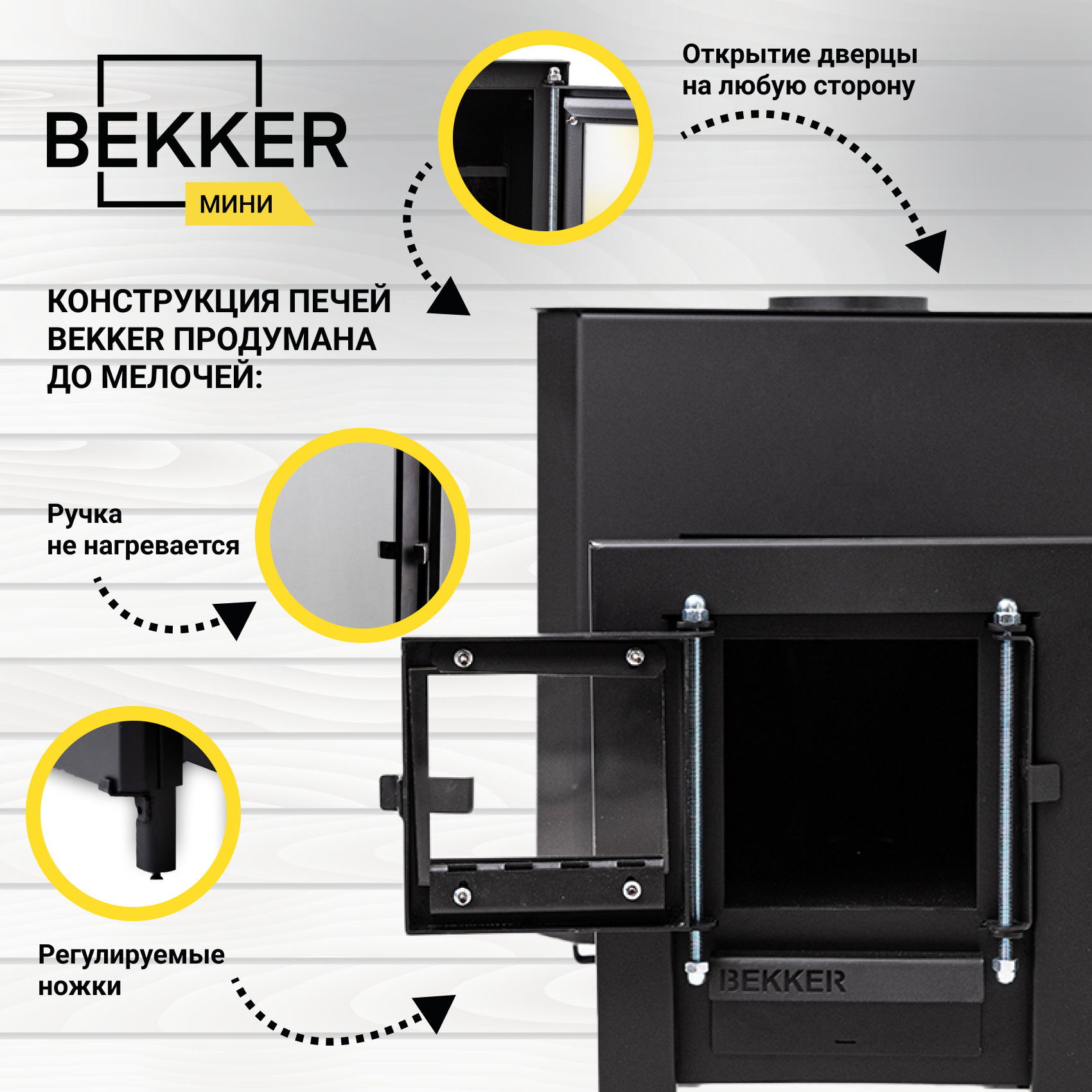 Печь банная BEKKER - Мини (3 мм), короткое горло, конвекция, глухая дверца, печь дровяная для бани