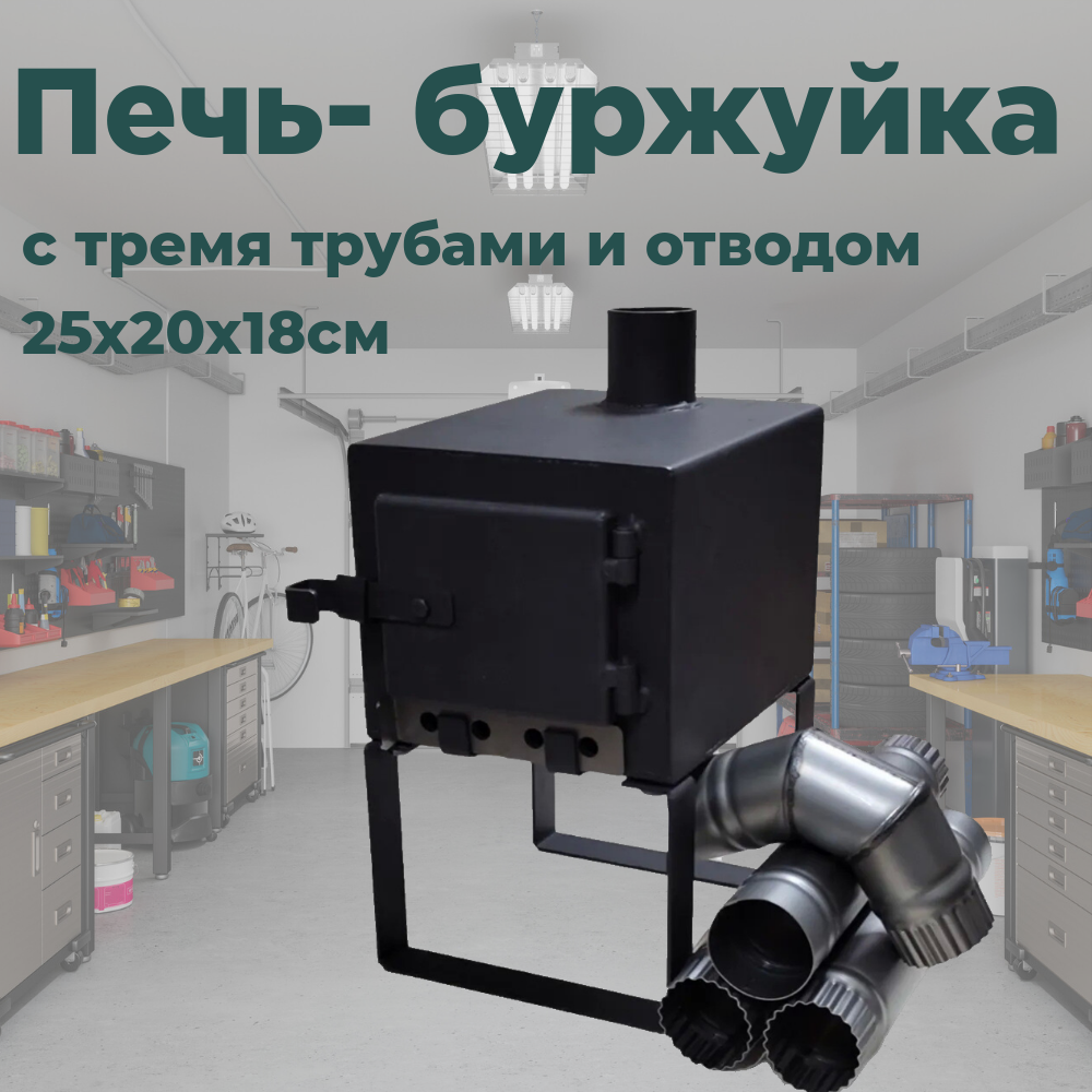 Мини буржуйка для палатки, 25х20х18 см, сталь 2 мм, с тремя трубами и отводом интересное:
