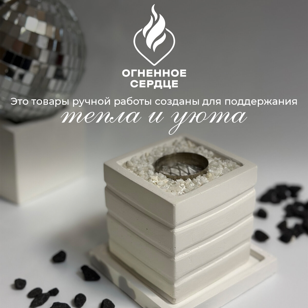 Биокамин "Кубический", напольная и настольная установка, белый бетон