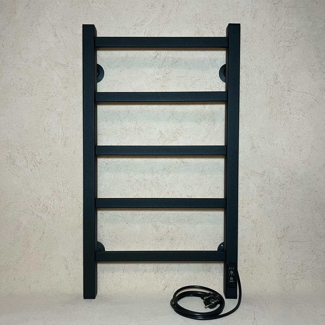 Полотенцесушитель электрический РуДизайн Лесенка профиль 500*600 черный матовый таймер и подключение справа