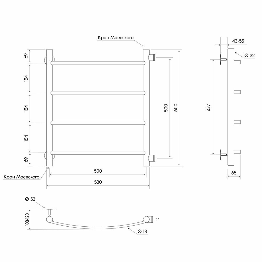 Полотенцесушитель лесенка водяной с боковым левым подключением 500х600 мм интересное: