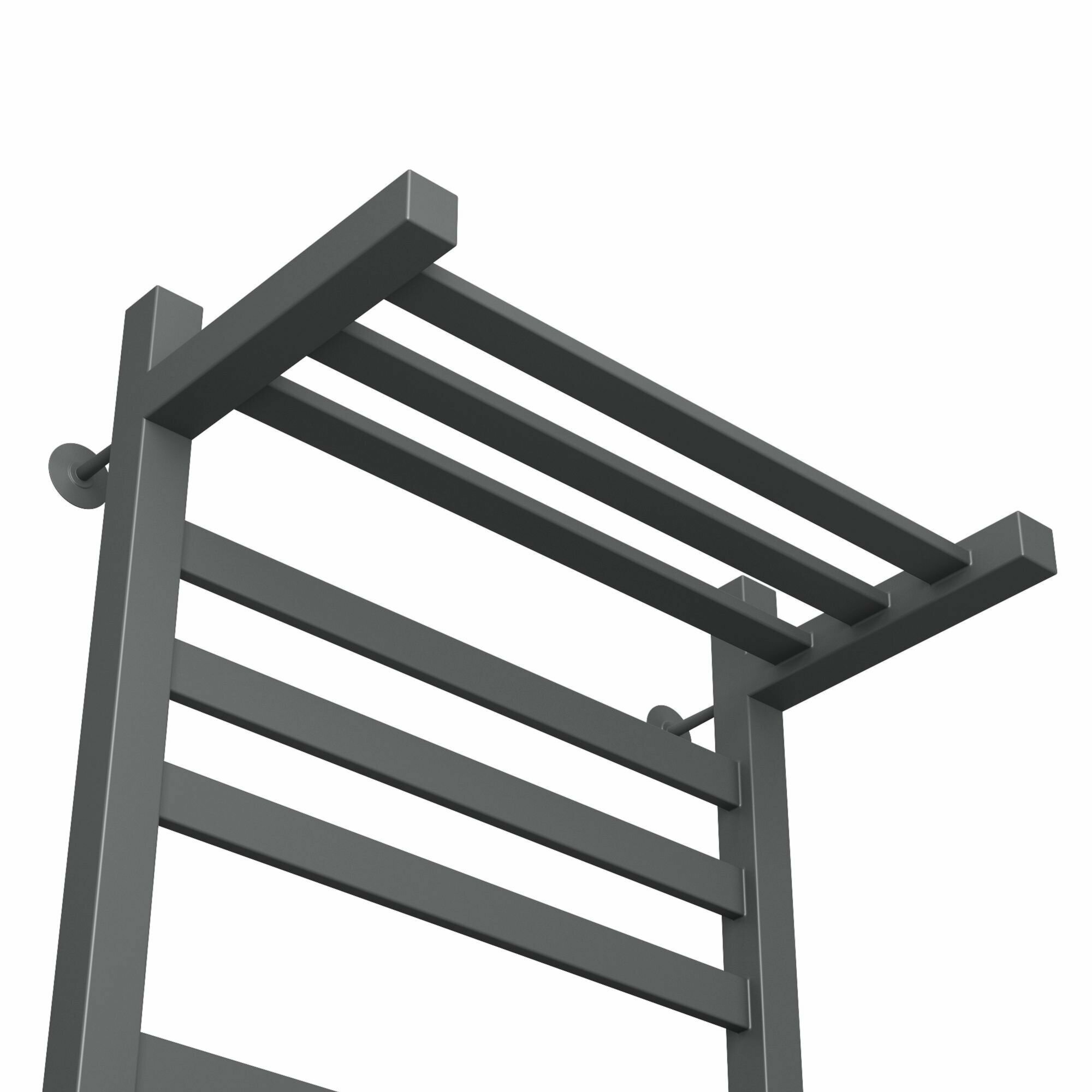 Полотенцесушитель электрический профильный с полкой Маргроид В81/10 50х80, темно-серый металлик с таймером слева интересное: