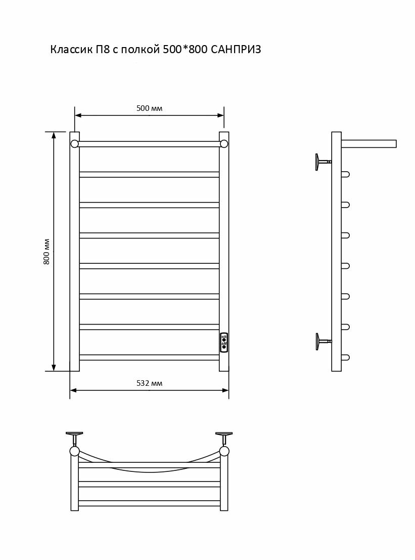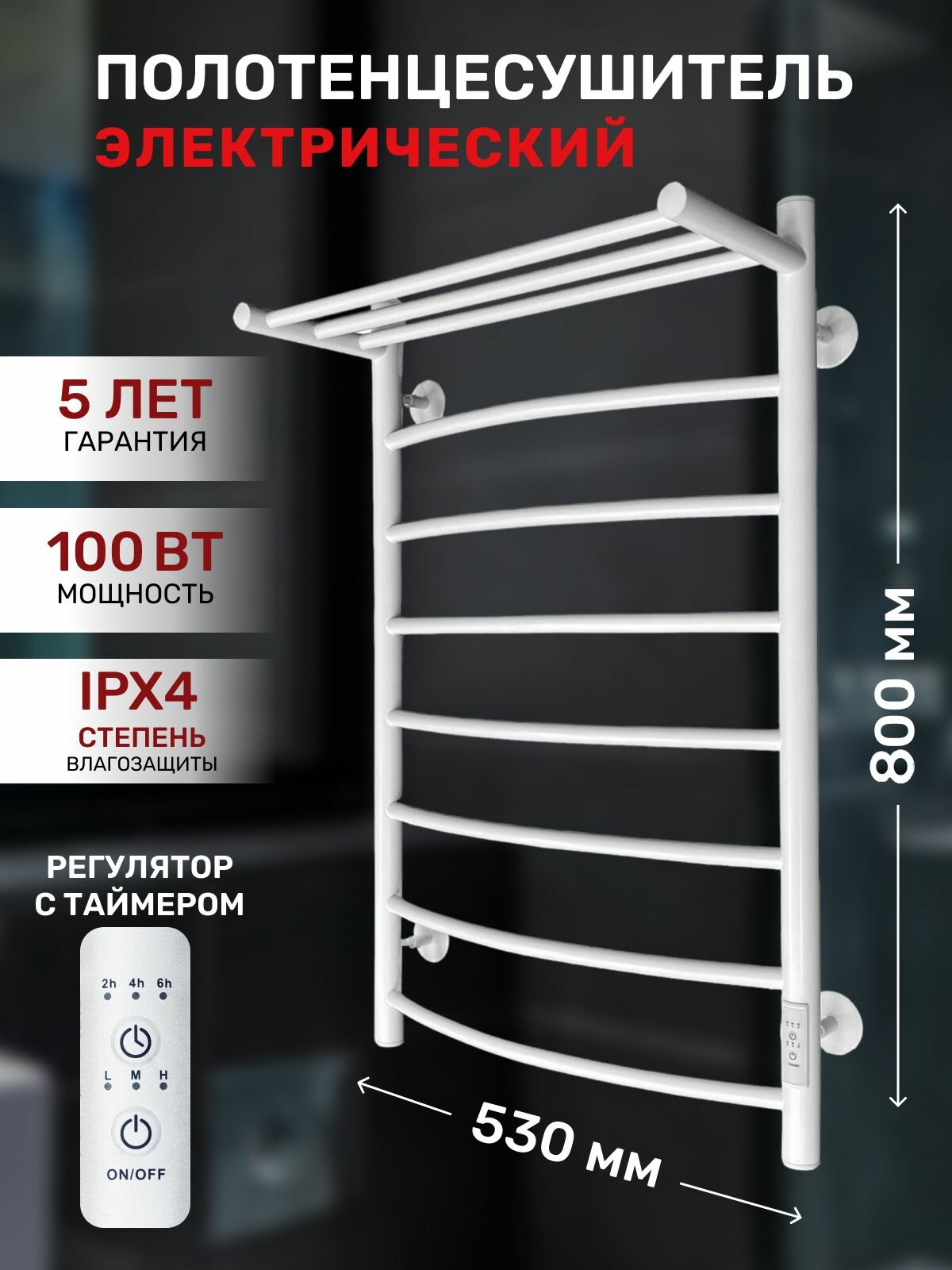 Полотенцесушитель электрический Классик П8 с полкой 500х800 Белый матовый универсальное подключение санприз интересное: