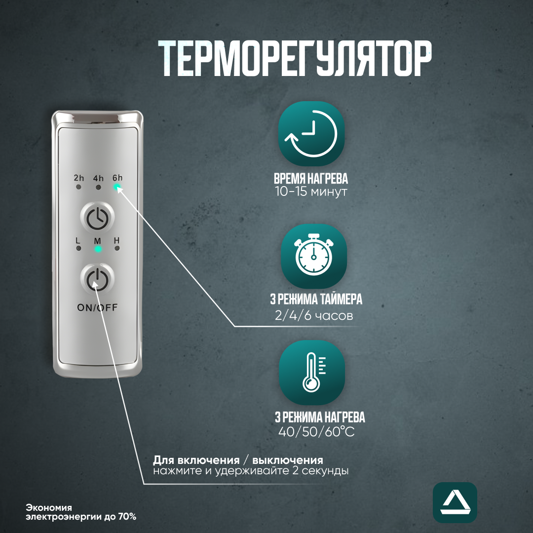 | Особенности | автоотключение при нагреве, кнопка включения/выключения, с таймером, терморегулятор |