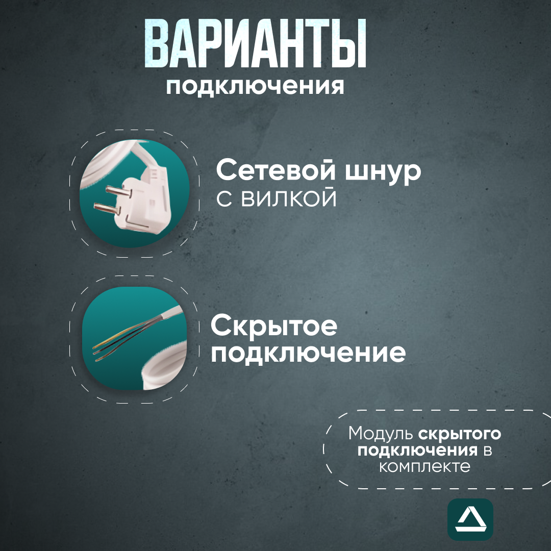 | Вид подключения | скрытое электрическое соединение, электропровод с вилкой |
