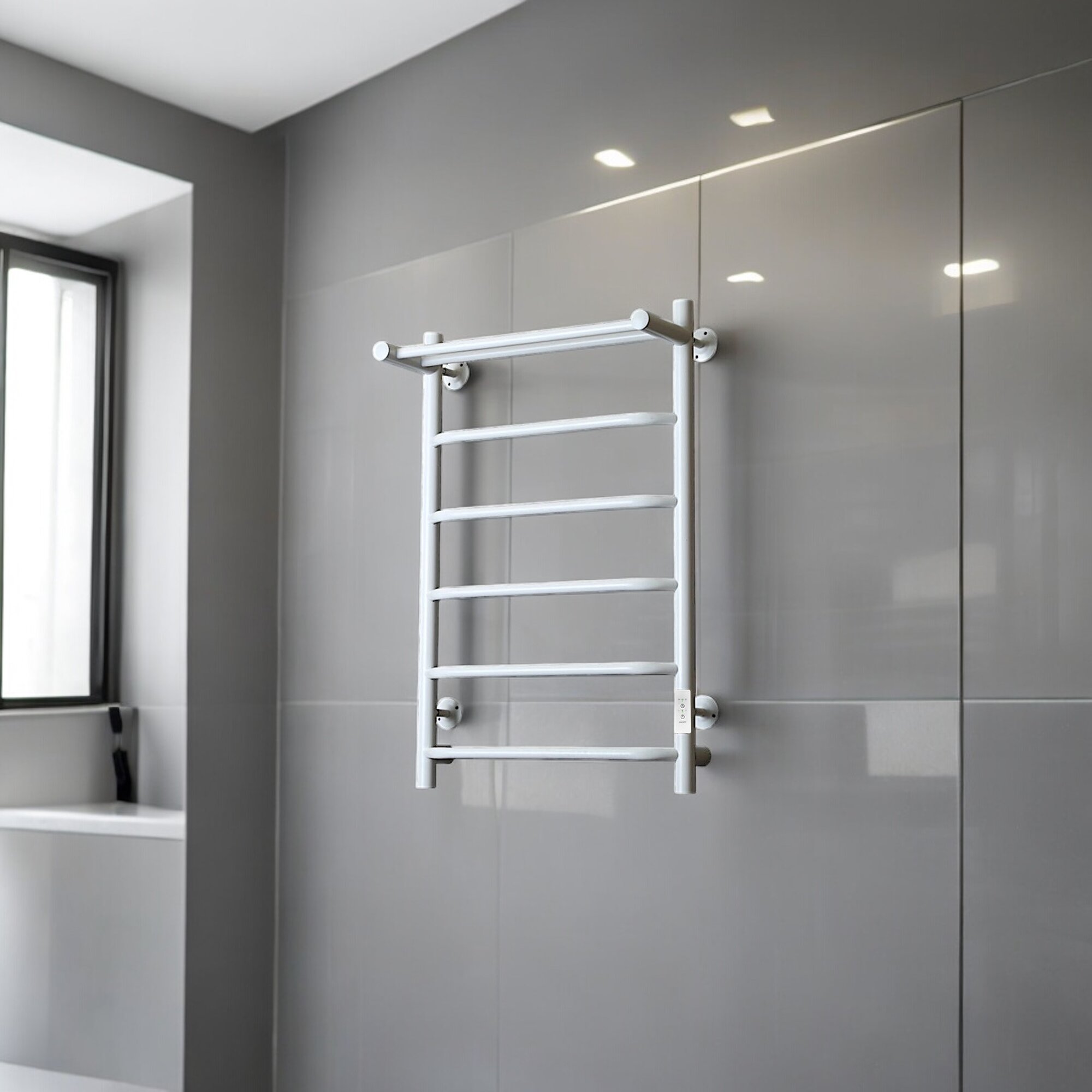 Полотенцесушитель электрический TermoPrime 500мм 800мм белый матовый, форма лесенка с полкой подключение слева / справа/ скрытое/ кабель с вилкой интересное: