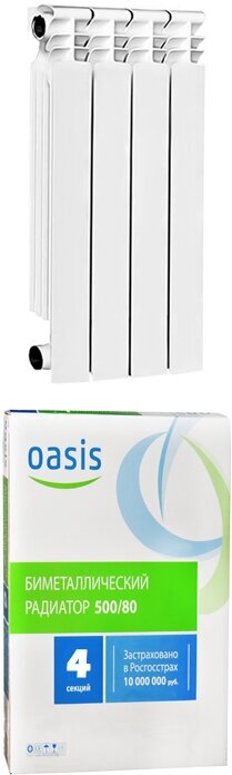 Радиатор секционный биметалл Oasis BM 500/80, кол-во секций: 4, 320 мм. подключение: боковое левое, боковое правое