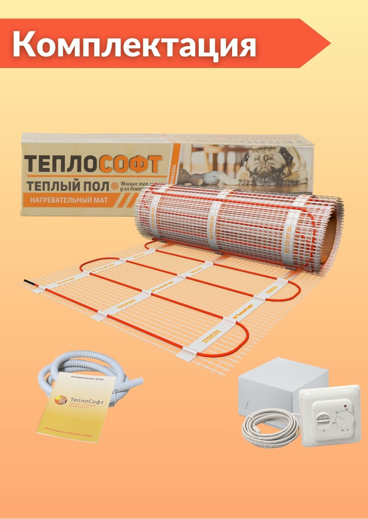 Купить Тёплый пол под плитку Теплософт 9 м2 с терморегулятором