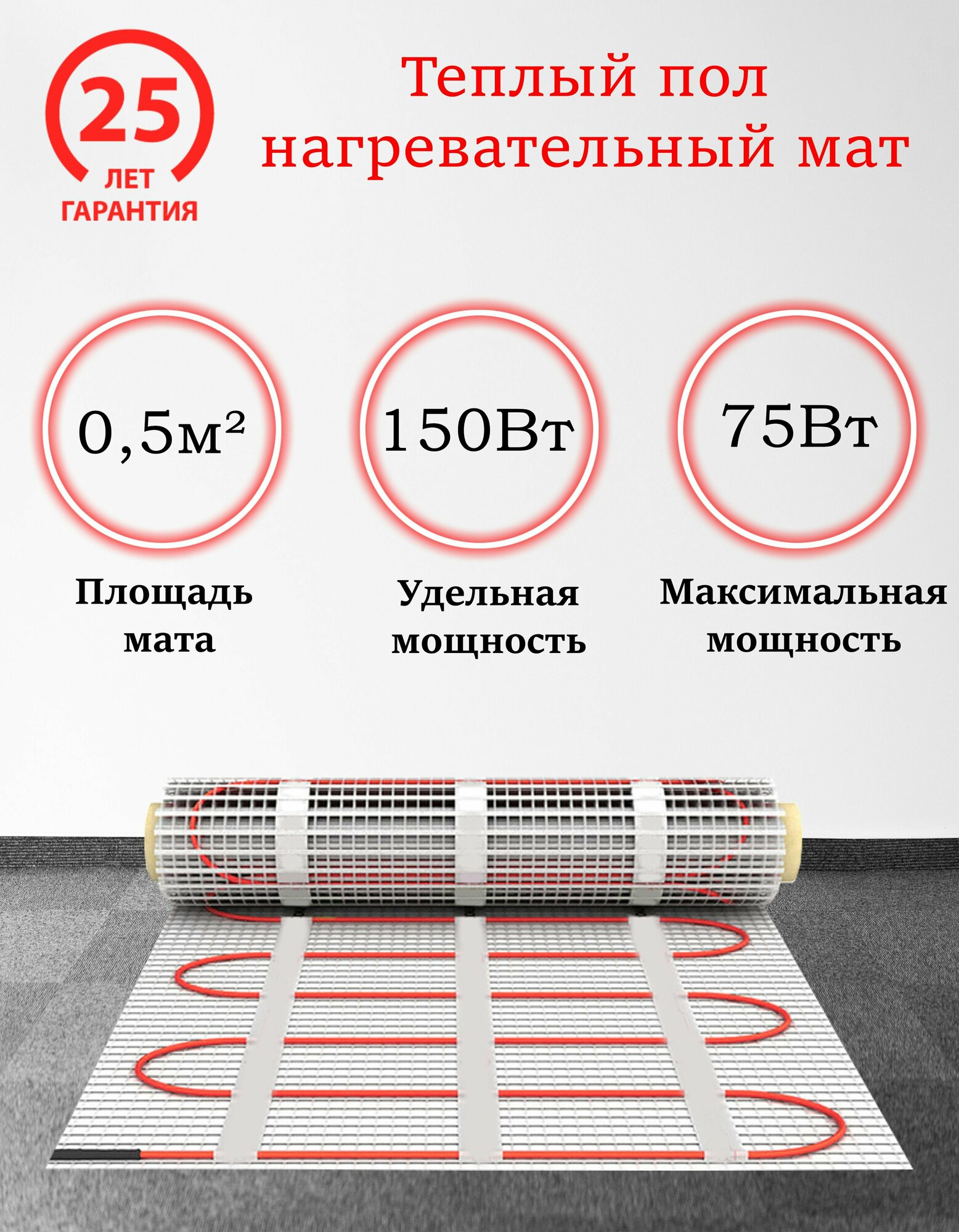 Купить Теплый пол электрический мат нагревательный MrSpeed FHMT / Мощность : 150Вт-75Вт / Размер : 0.5 м2