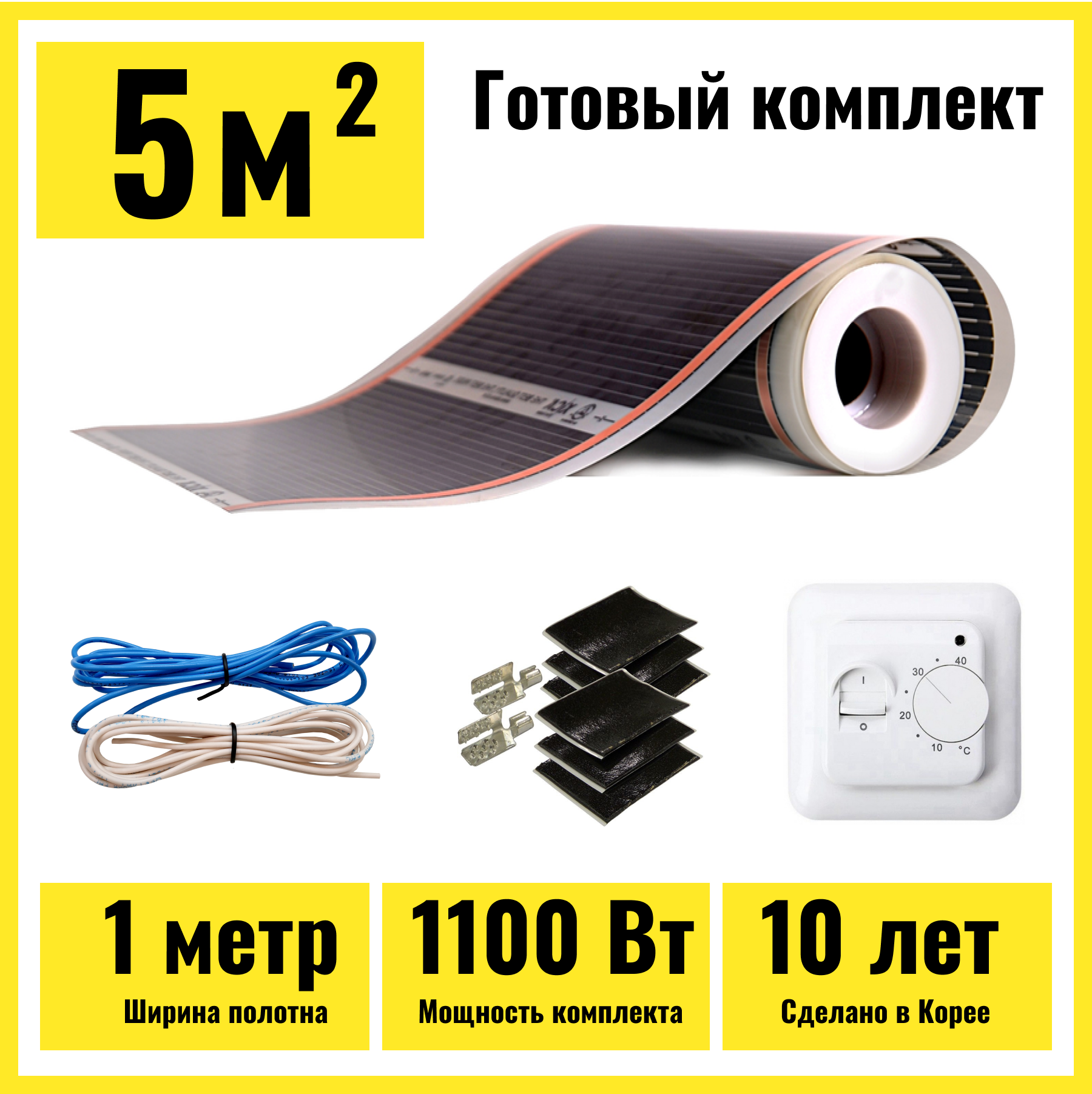 Купить Инфракрасный пленочный теплый пол под ламинат 5м2 с механическим терморегулятором