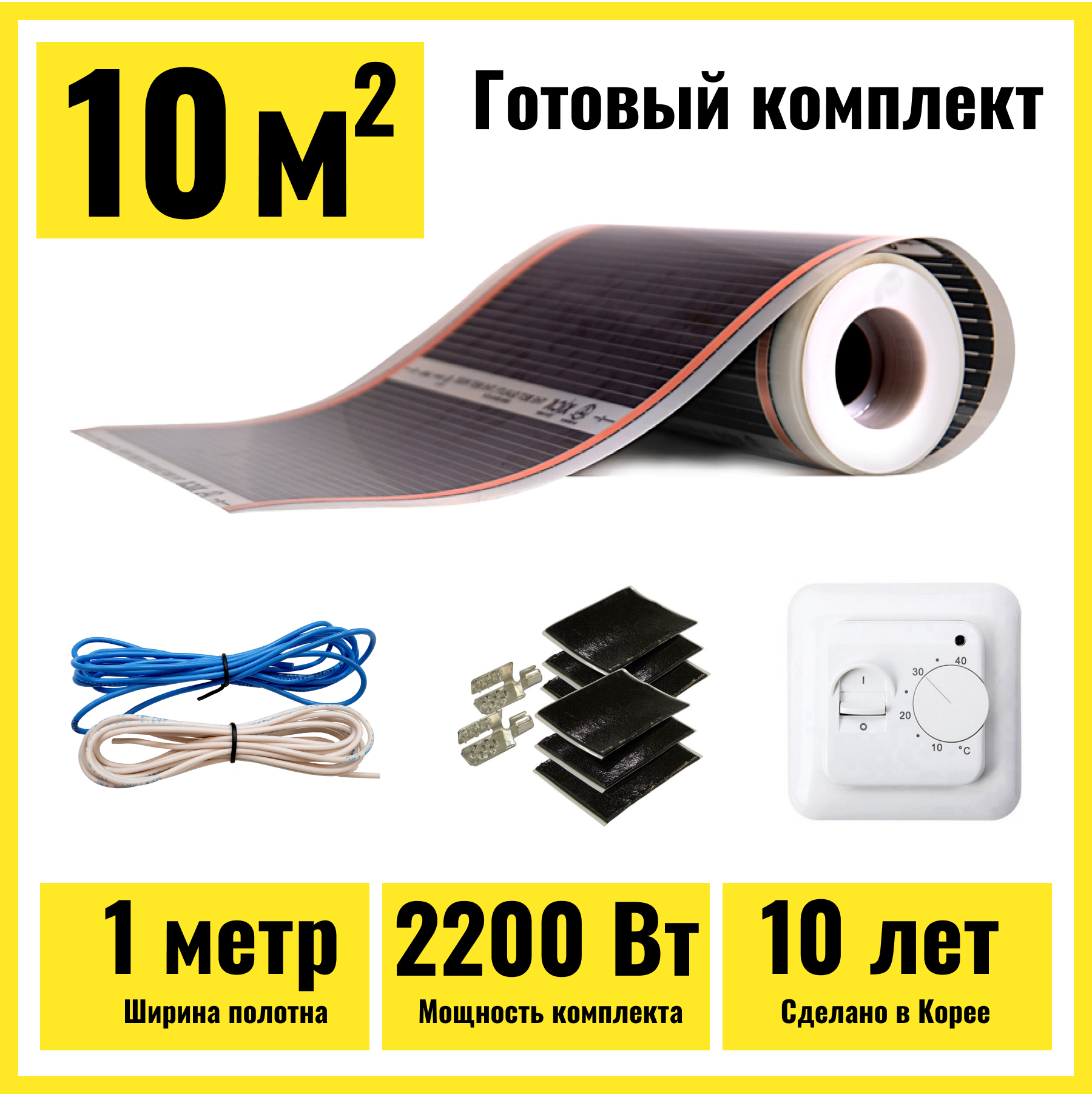Инфракрасный пленочный теплый пол под ламинат 11м2 с механическим терморегулятором