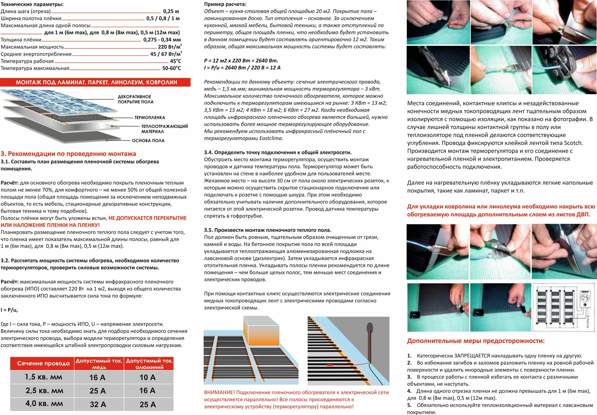 Инфракрасный пленочный теплый пол под ламинат 12м2 с механическим терморегулятором