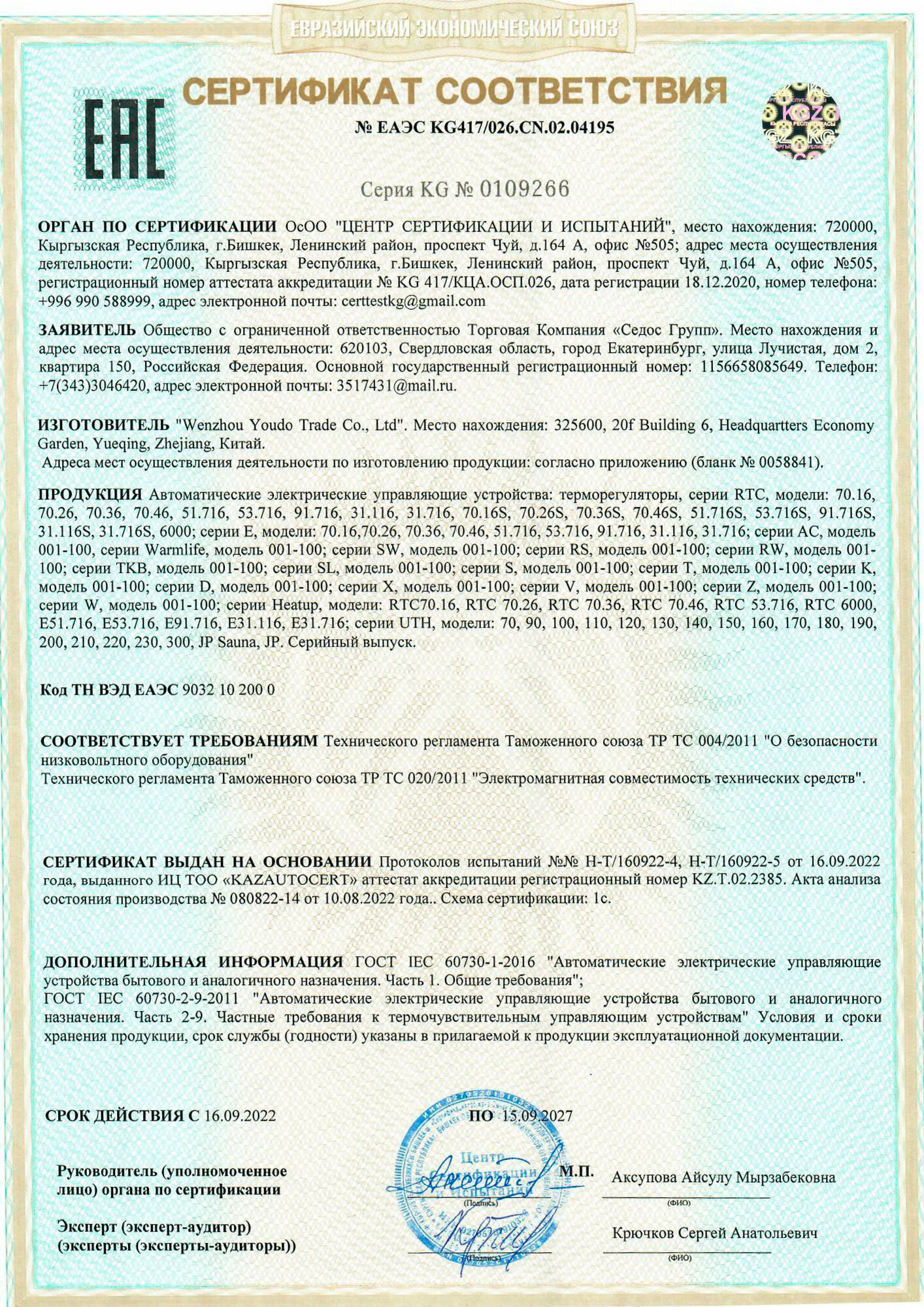 | Термостат в комплекте | есть |