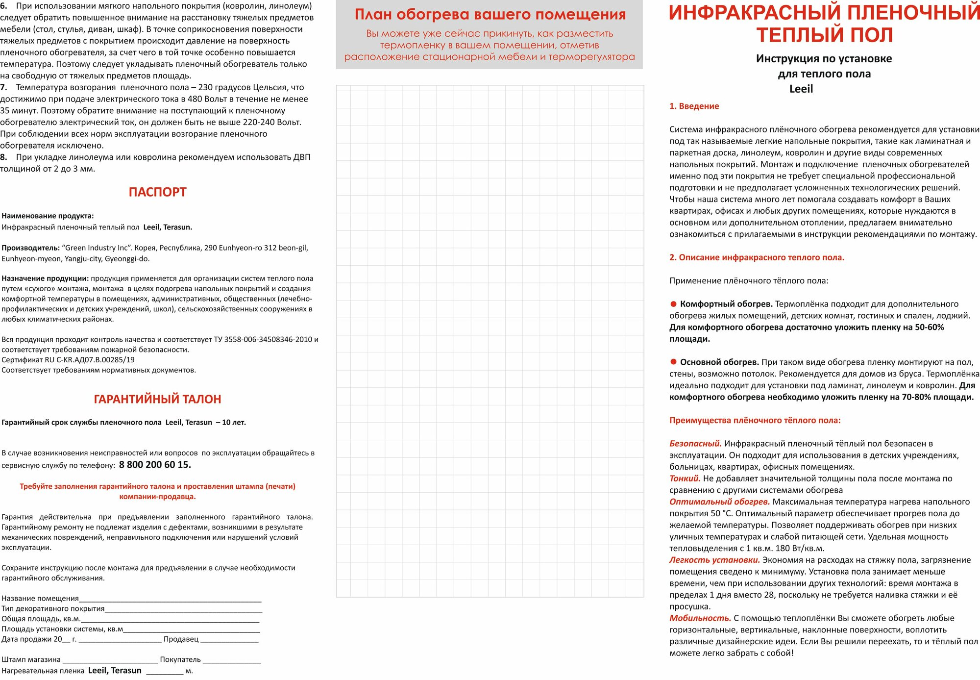 | Тип | инфракрасный пленочный пол |
