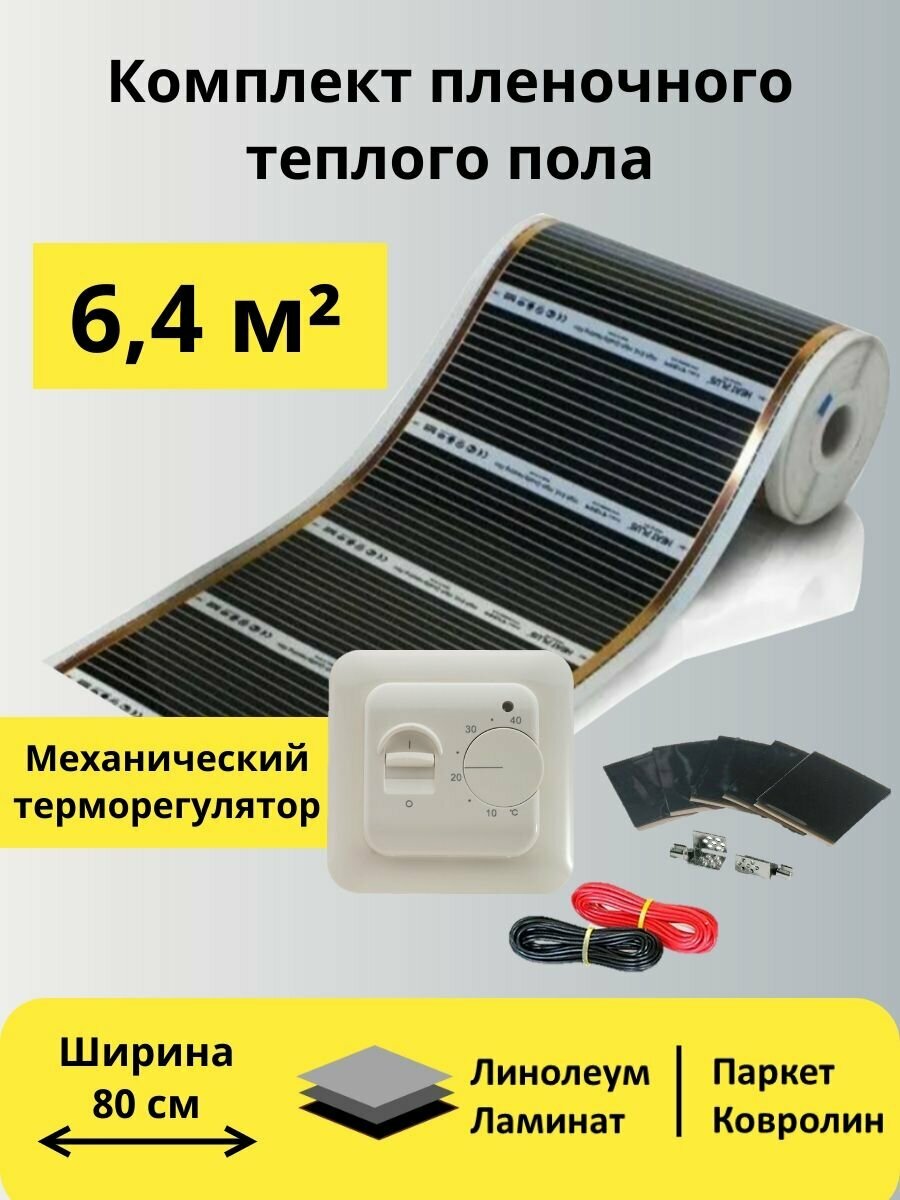 Пленочный теплый пол 6,4 м.кв. ширина 80см с Механическим терморегулятором