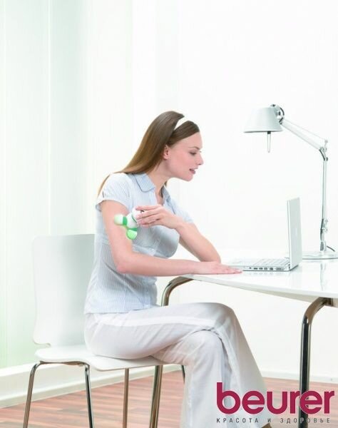 Компактный массажер Beurer / Вибрационный массаж / Инфракрасный прогрев / зеленый