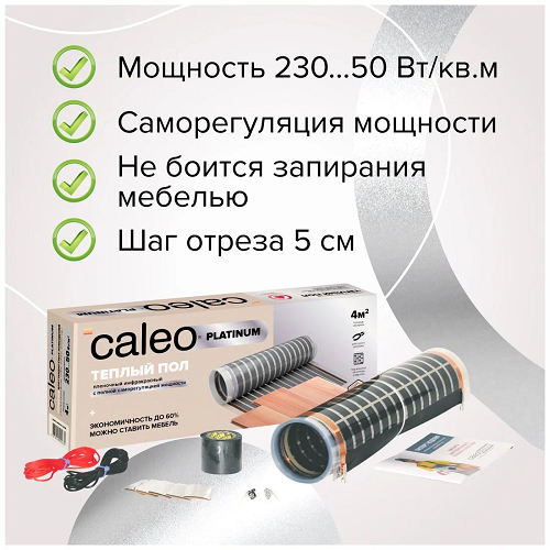 Теплый пол cаморегулируемый Caleo Platinum 50/230 Вт/м2, 1,5 м2 в комплекте с терморегулятором С936 Wi-Fi White интересное: