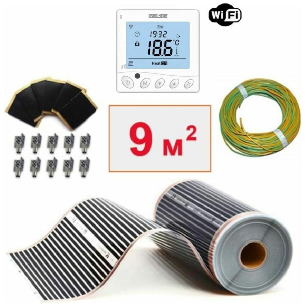 Пленочный электрический теплый пол под ламинат , линолеум , паркет 9м. кв. с умным черным wi-fi терморегулятором. Инфракрасная пленка 9 м2