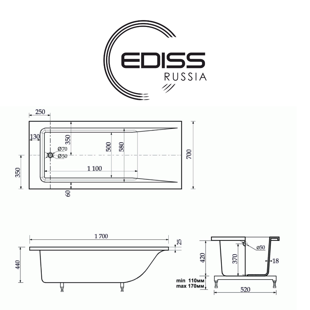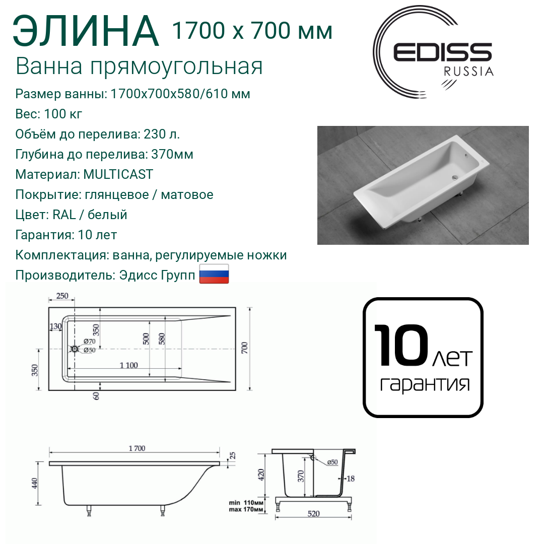 СохранитьВанна из литьевого мрамора Ediss Элина 1700х700мм (ножки в комплекте) интересное: