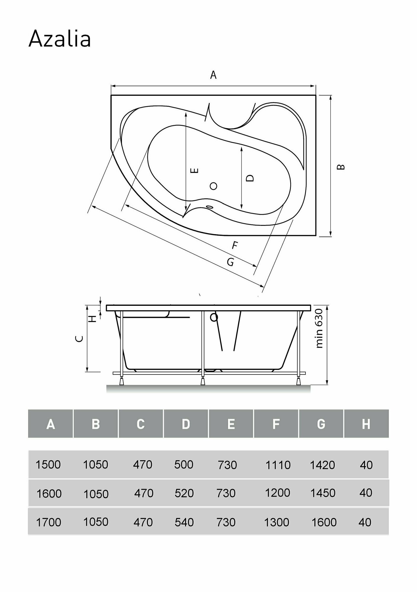 Акриловая ванна Vayer Azalia R 170x105