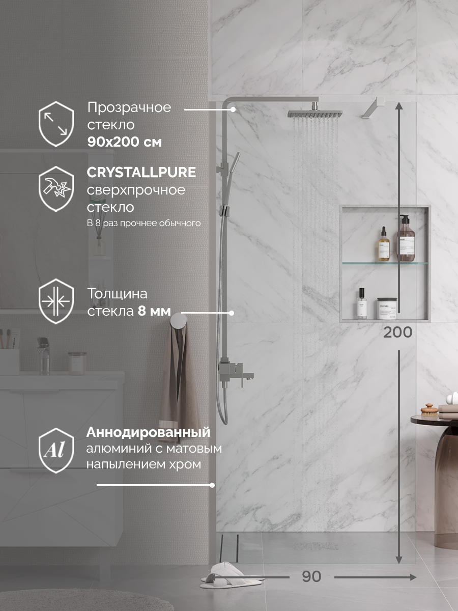 СохранитьДушевая перегородка ограждение Reflexion RX20090CCR-18 Walk in 200x90 см прозрачное закаленное стекло 8мм хромированный профиль интересное: