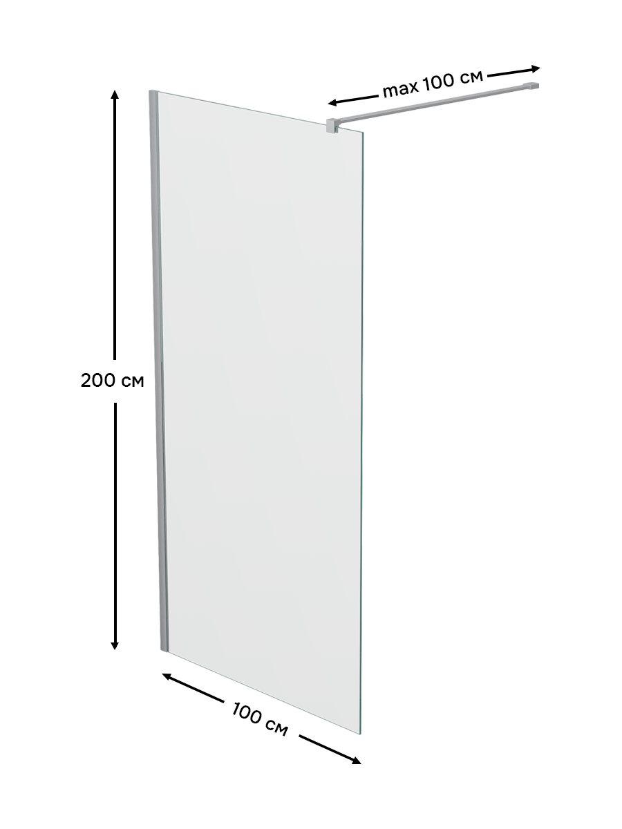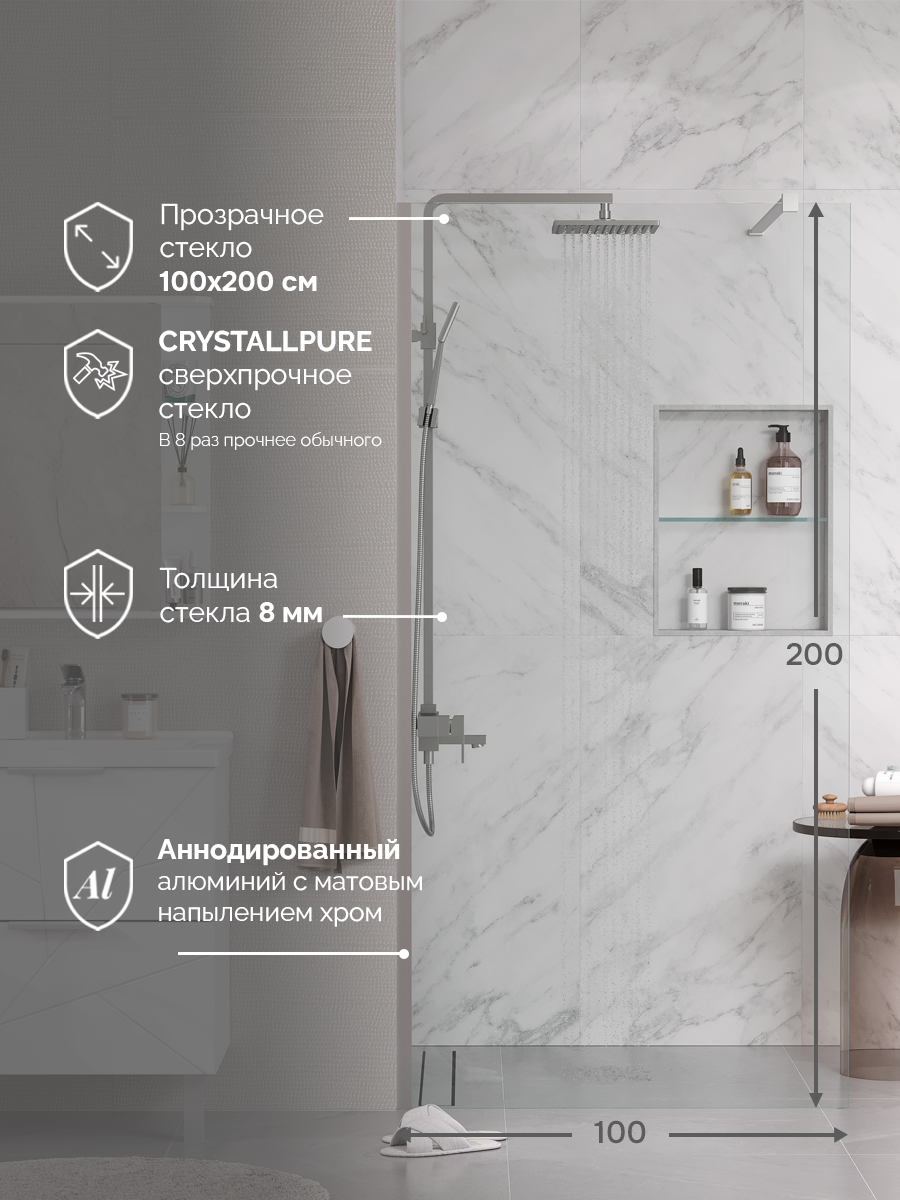 Купить Душевое ограждение/Душевая перегородка Reflexion RX200100CCR-17 Walk in 200x100 см, прозрачное закаленное стекло 8мм, хромированный профиль