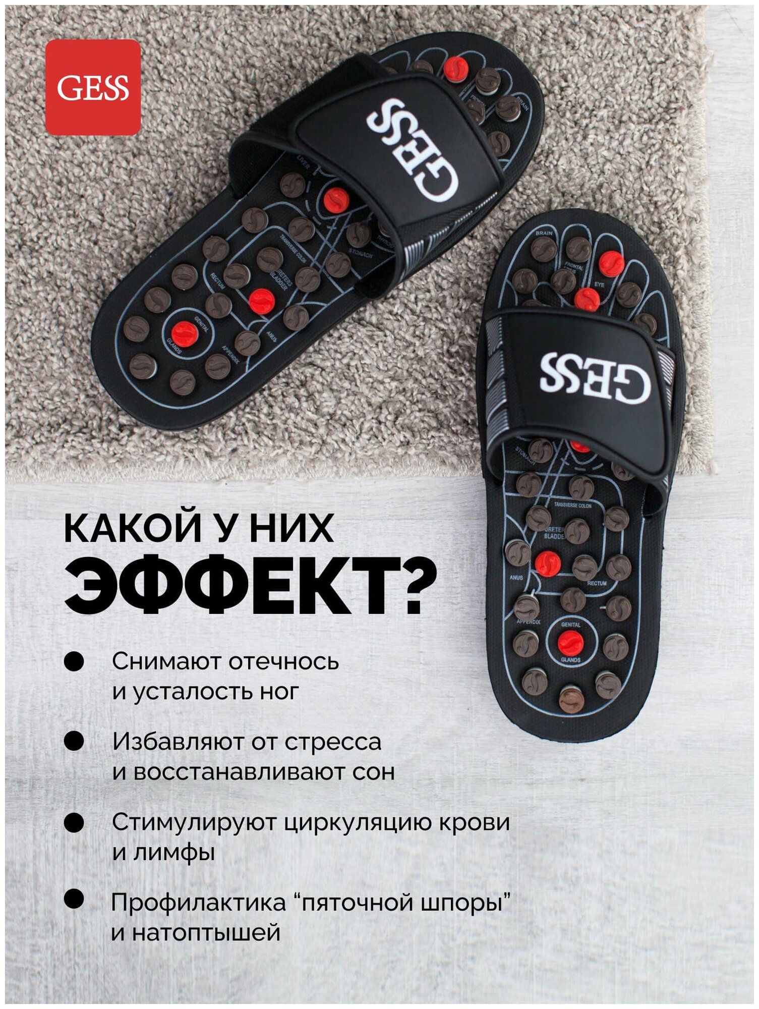 Акупунктурный массажные тапочки для ног GESS массажные тапочки uFoot (M 40-41), GESS-204 M, 40-41, черный, 1 уп., 2 шт.