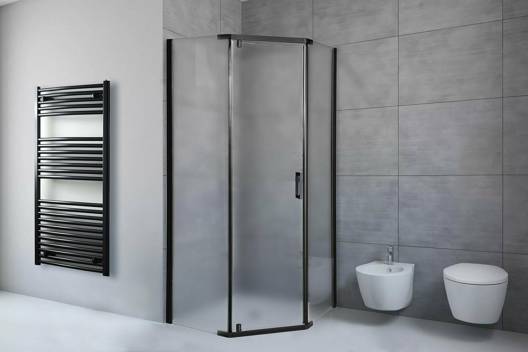 Купить Душевой уголок Royal Bath стекло матовое профиль черный 6мм трапеция 120х120х185