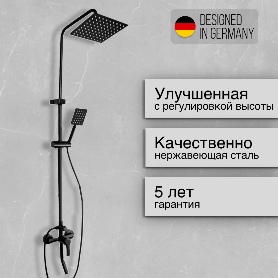 | Особенности | держатель душевой лейки / регулируемый верхний душ / система быстрого монтажа |