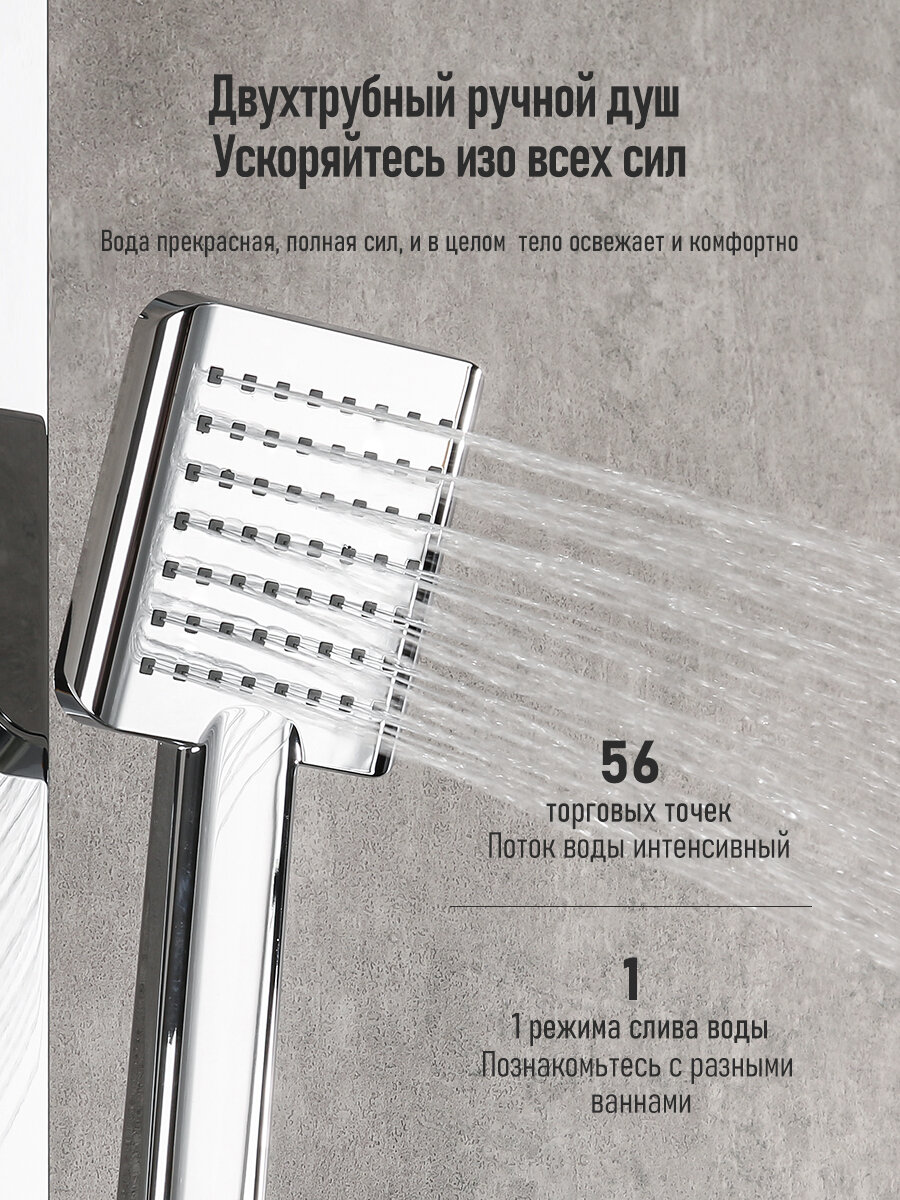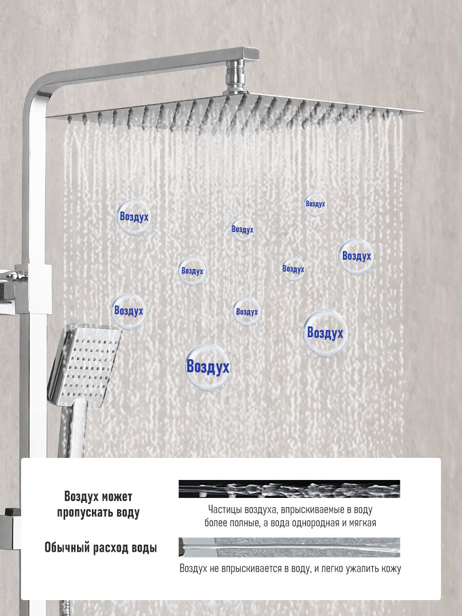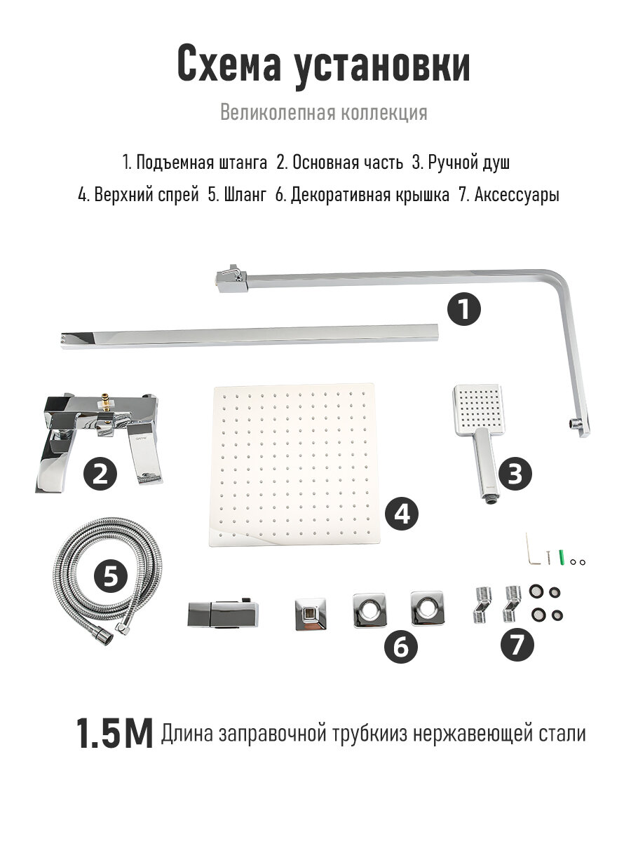 | Комплектация | верхний душ / ручной душ / Смеситель |