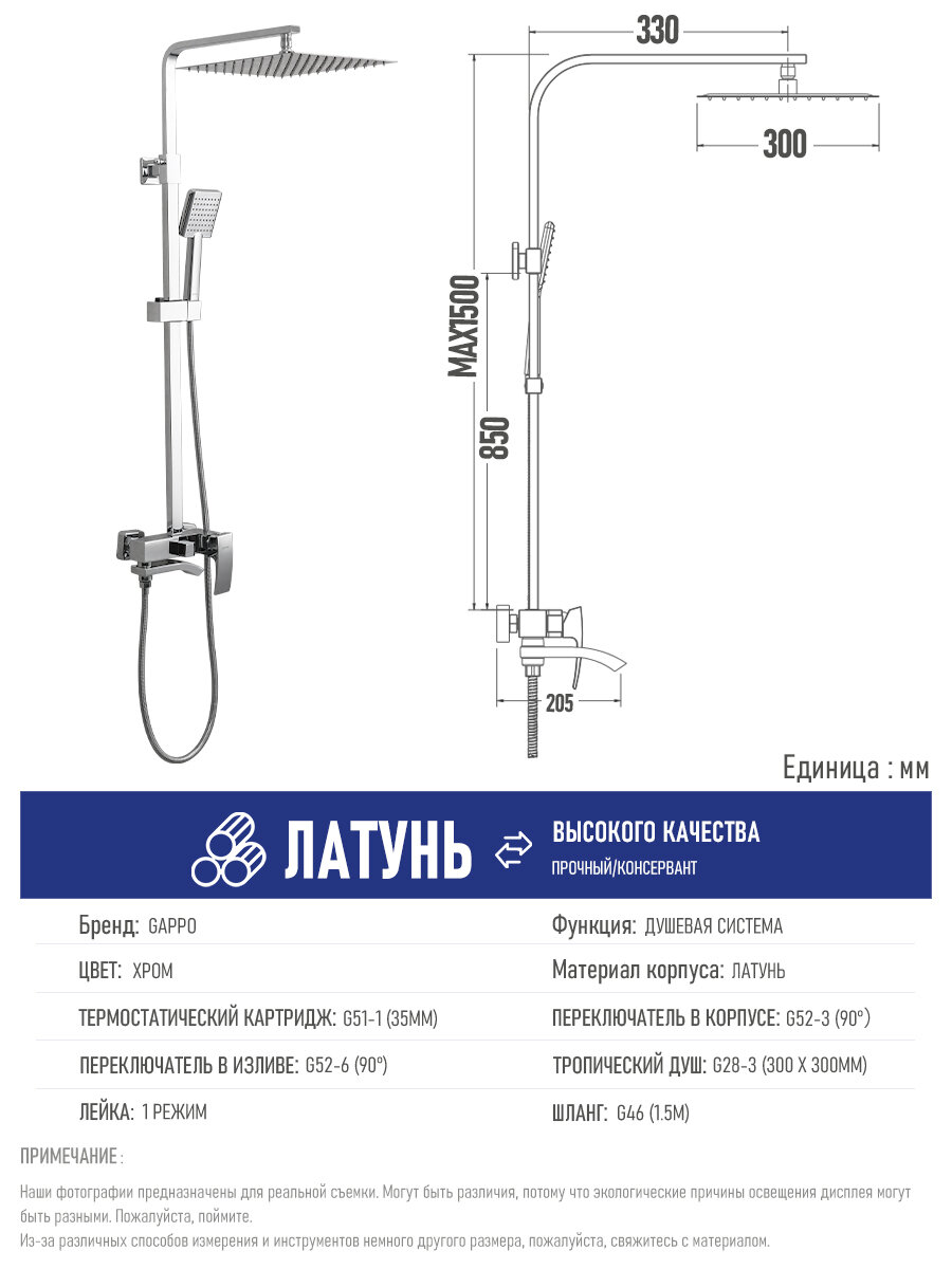 Душевая система Gappo G2407-11 хром латунь интересное: