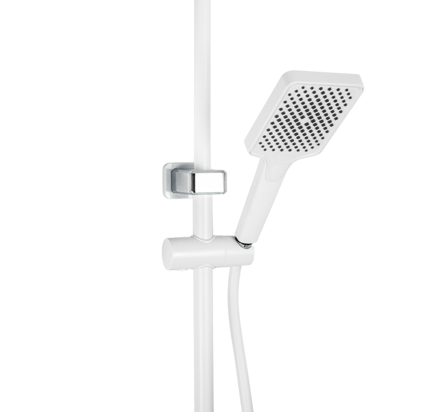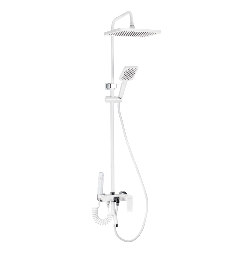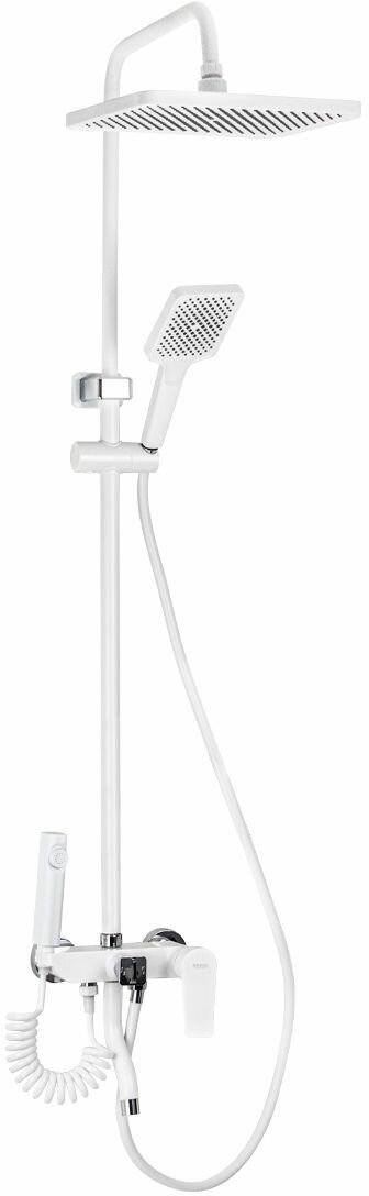 Купить Смеситель + стойка душевая "тропический душ" с двумя лейками и гигиеническим душем, корпус АБС пластик, цвет белый.