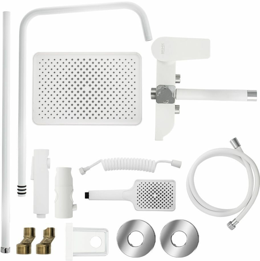 Смеситель + стойка душевая "тропический душ" с двумя лейками и гигиеническим душем, корпус АБС пластик, цвет белый. интересное: