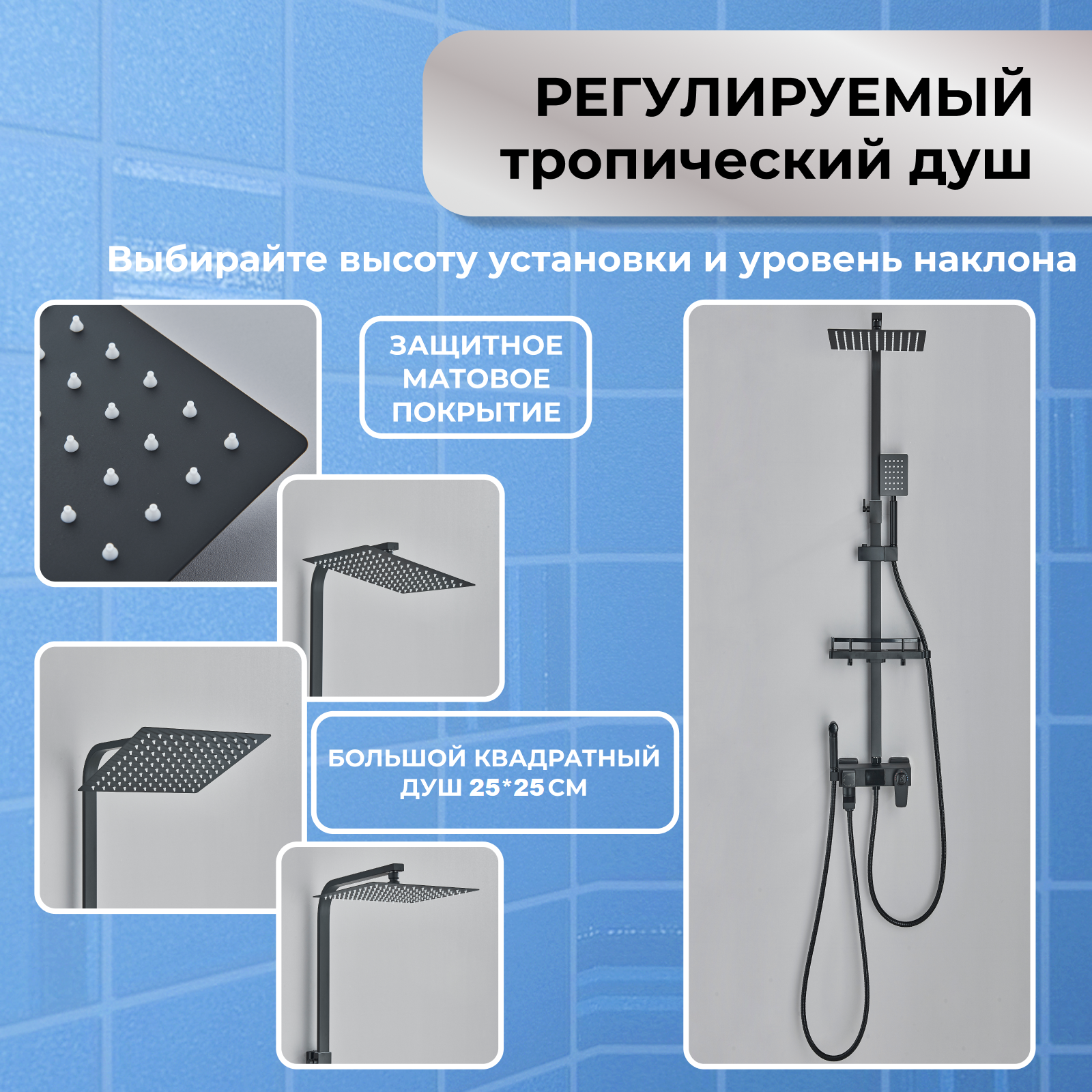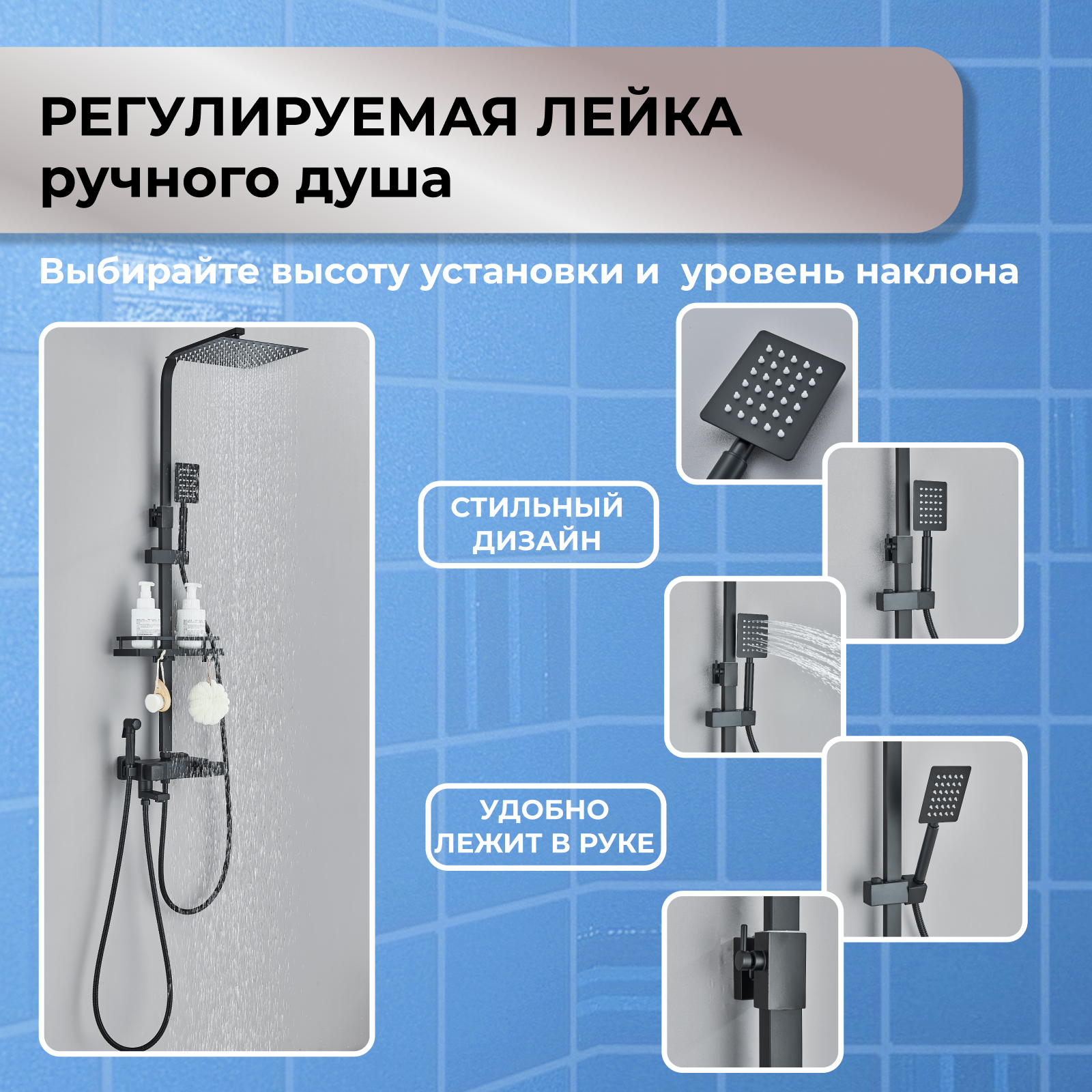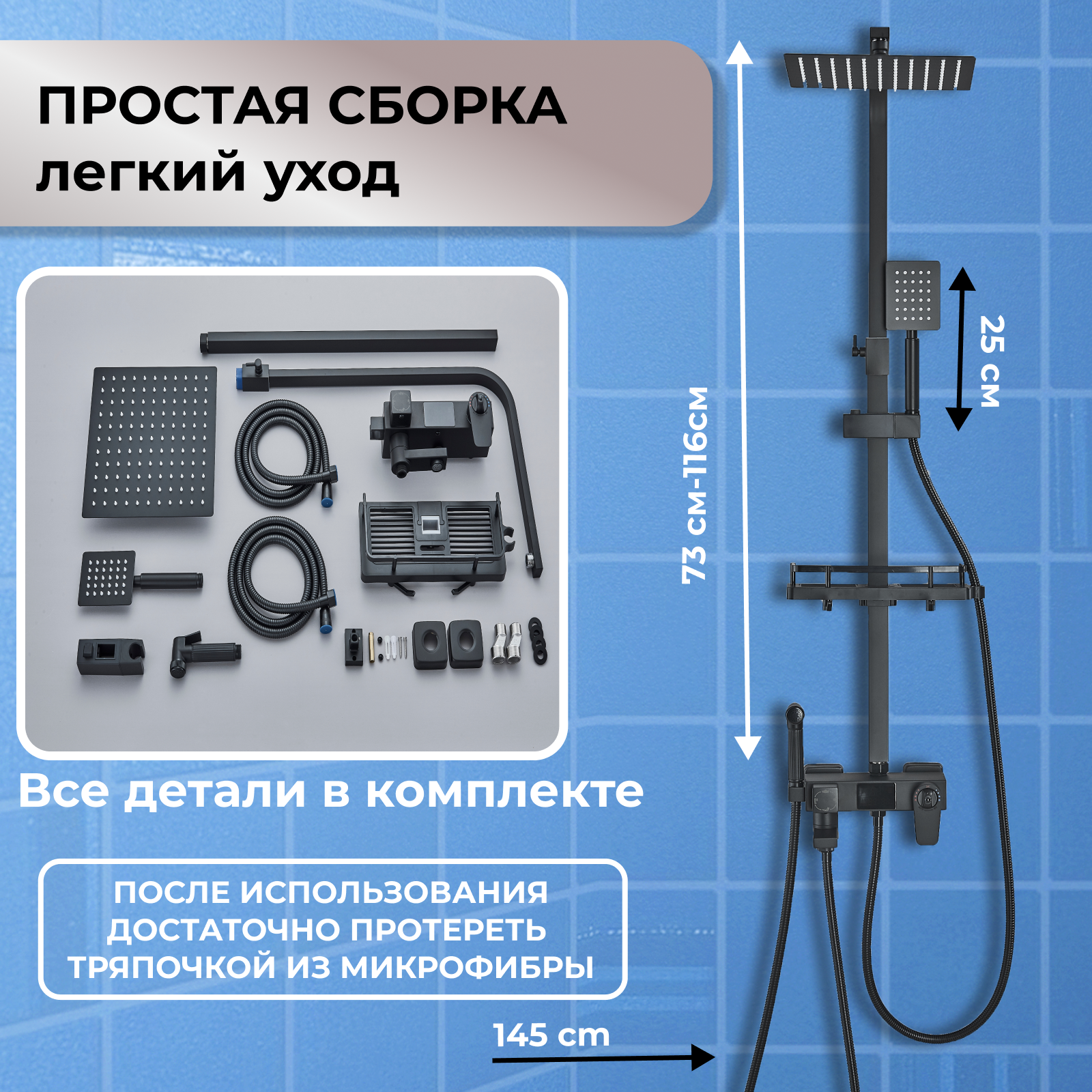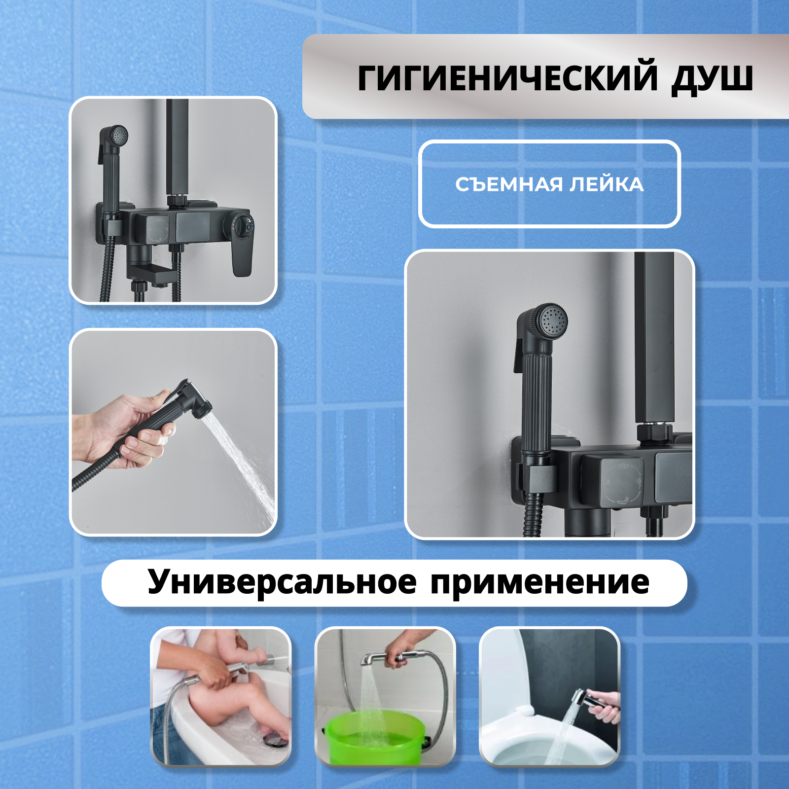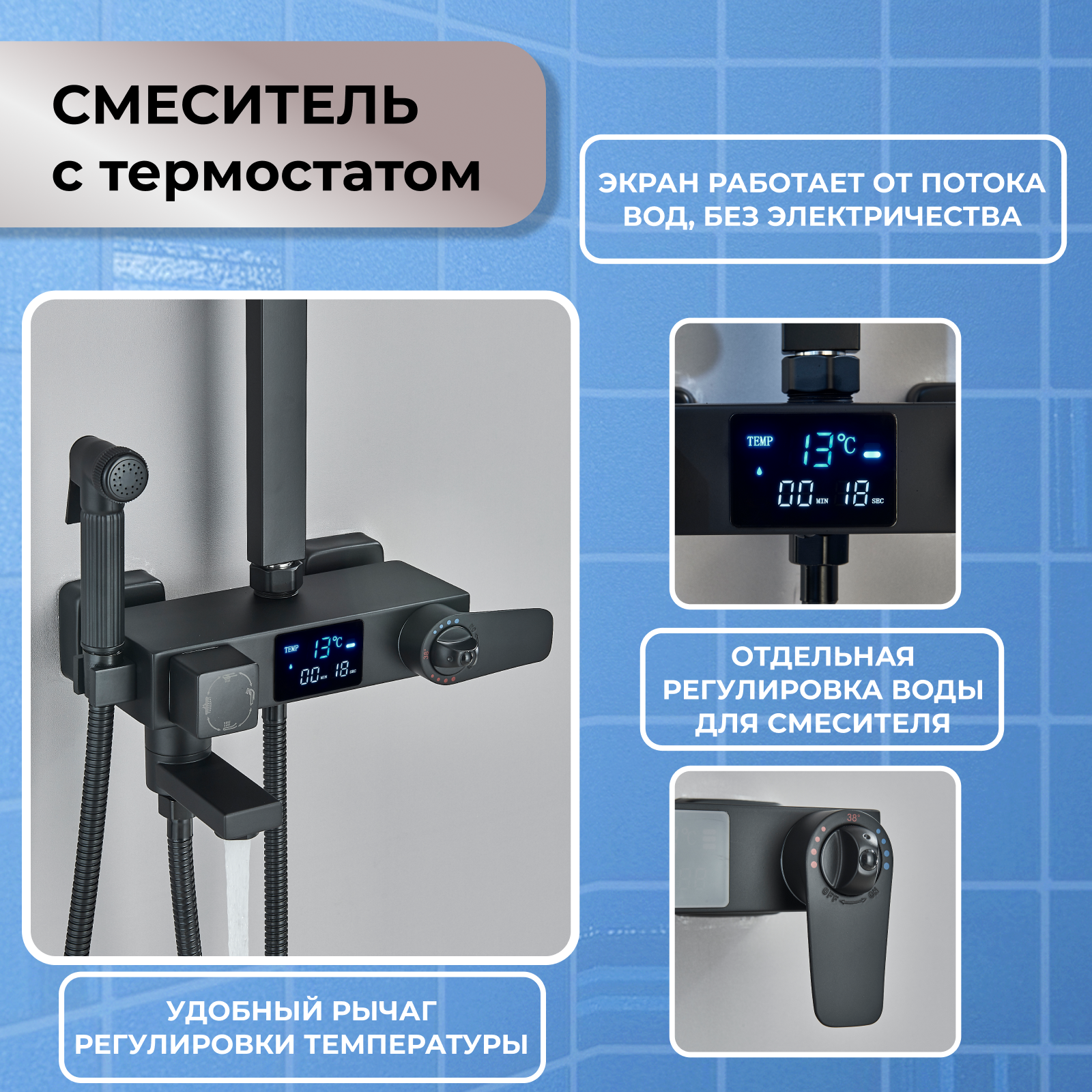 Душевой комплект с тропическим душем, термостатом, гигиеническим душем, душевая стойка со смесителем, душевой гарнитур черный с термостатом интересное:
