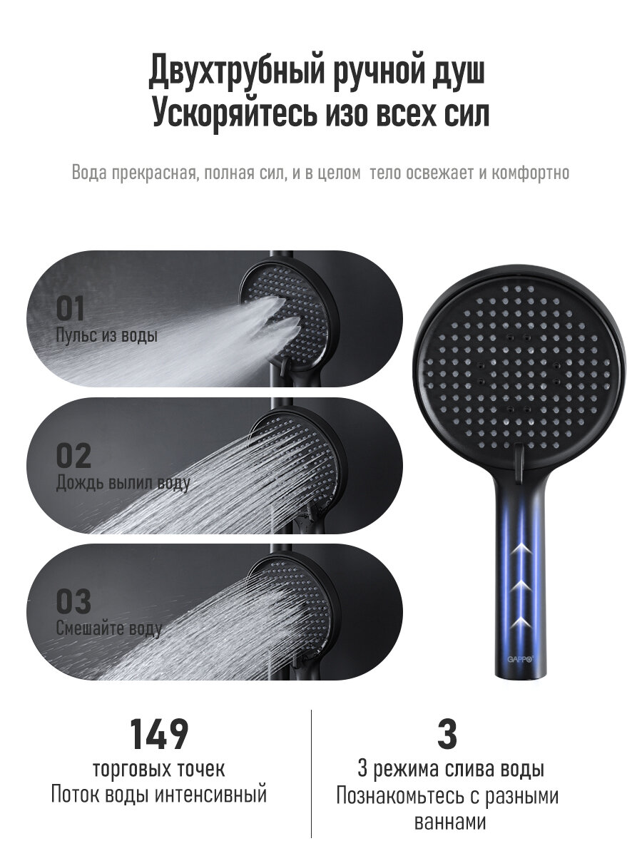 Душевая система Gappo G2406-6 черный латунь интересное: