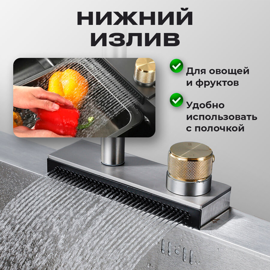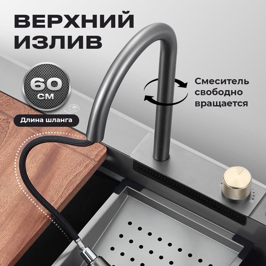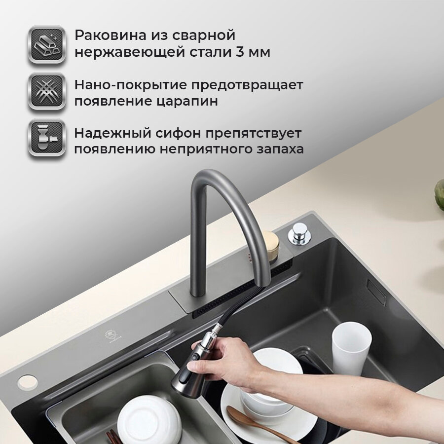 | Особенности | PVD покрытие / разделочная доска / смеситель в комплекте |