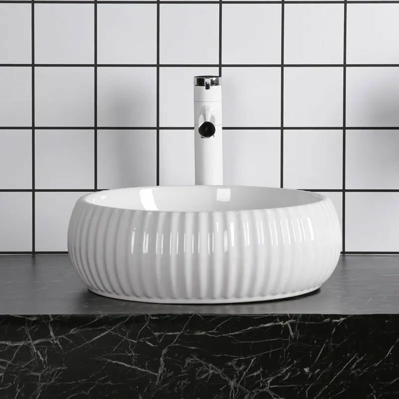 Купить Раковина Ceruttispa CR0007 накладная, белая, круглая, ребристая 405х405х130