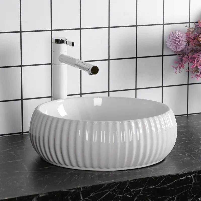 Раковина Ceruttispa CR0007 накладная, белая, круглая, ребристая 405х405х130 интересное: