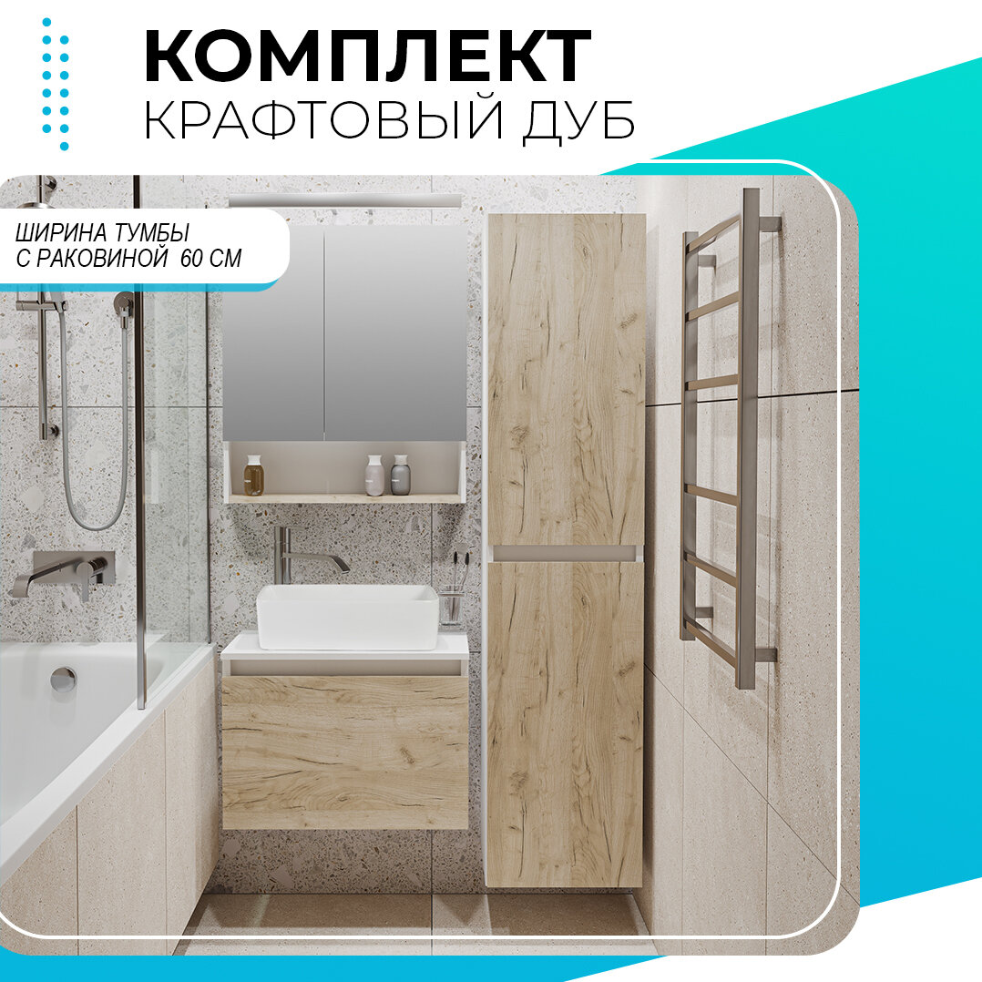 Комплект 3 в 1 Lavinia Boho Bathroom Sink 21520524: накладная фарфоровая раковина 60 см, металлический сифон, донный клапан