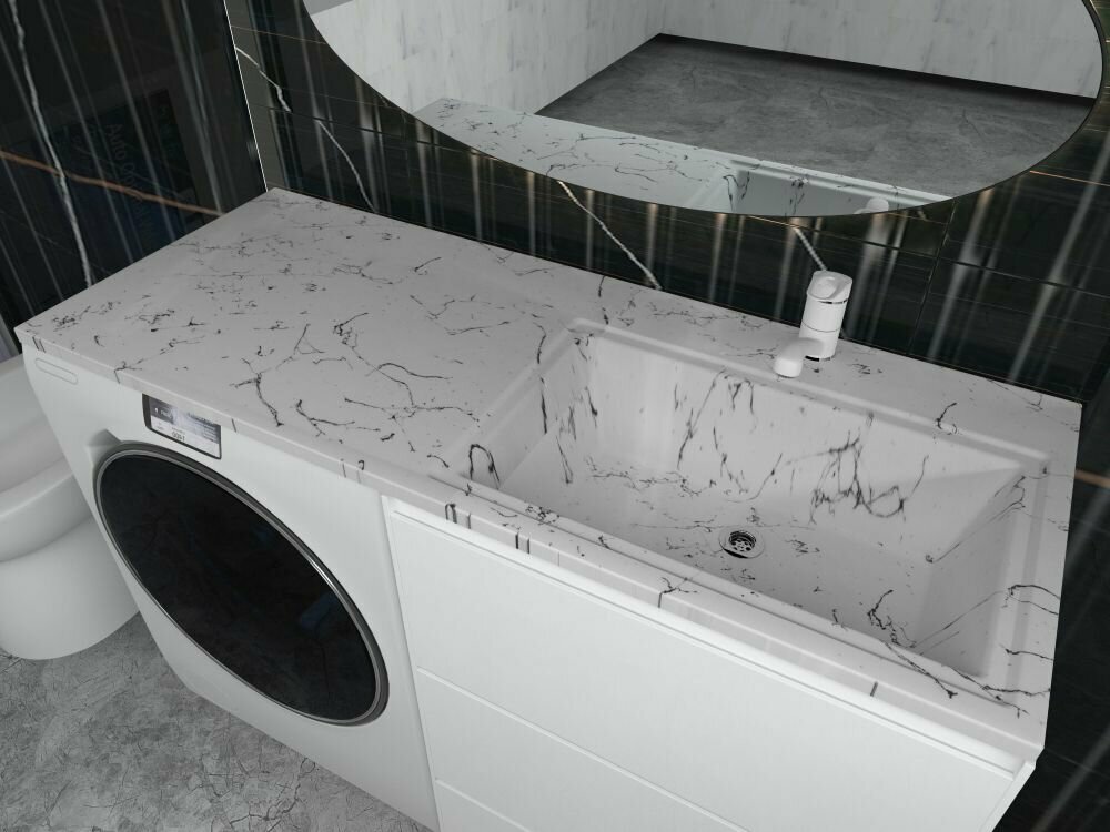 Раковина над стиральной машиной Uperwood Марсал 120 см, левая, белый мрамор