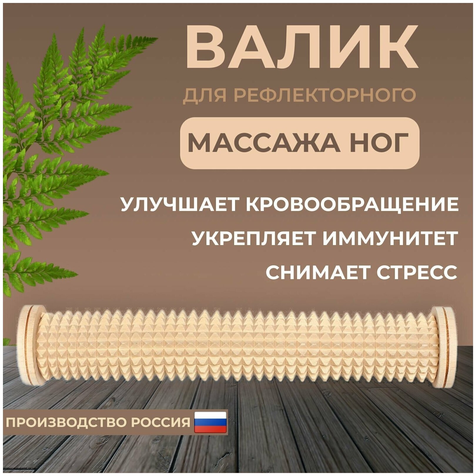 Массажёр для ног «Валик», деревянный, с шипами, d 5,5 × 24 см