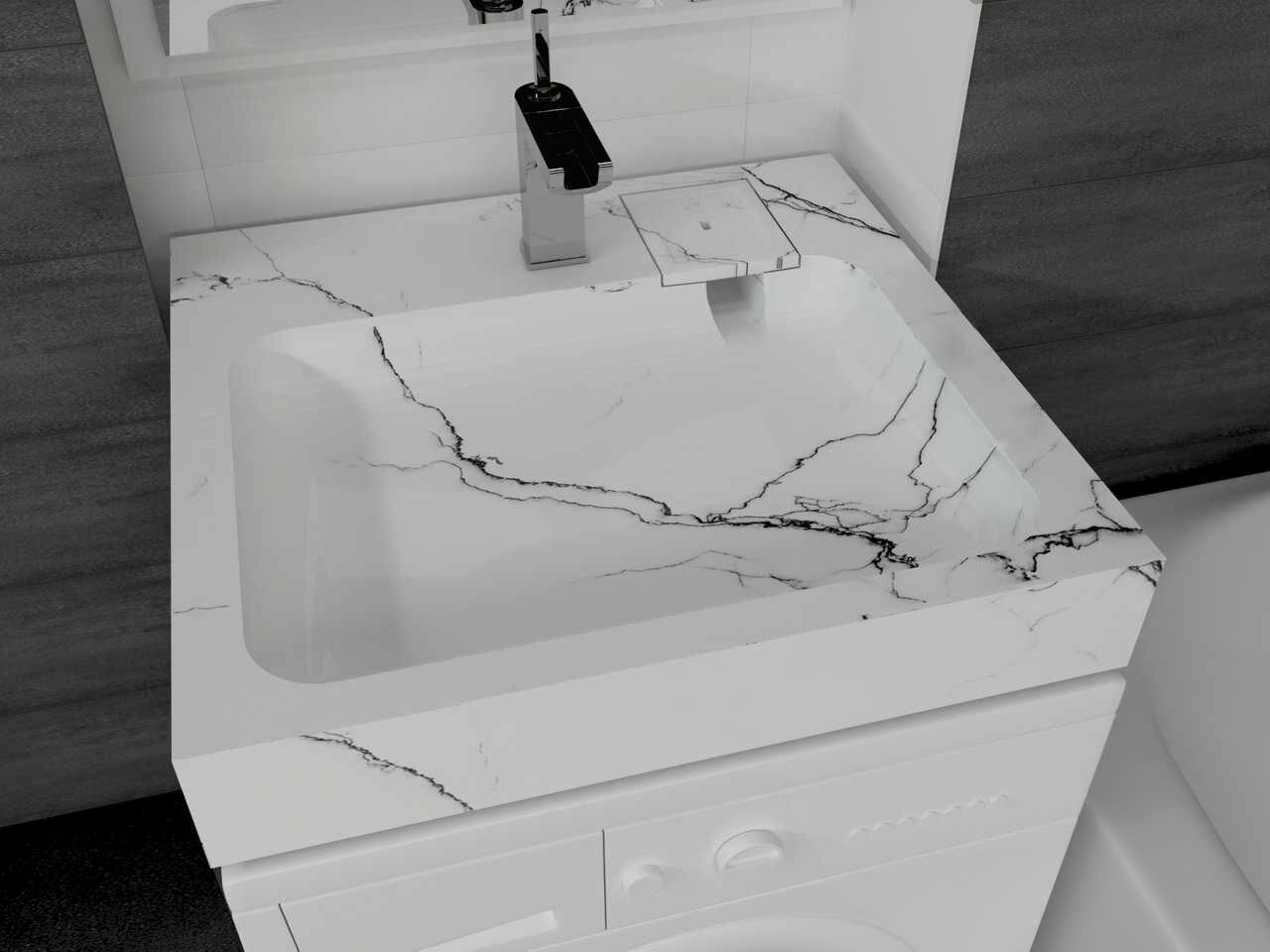 Купить Раковина над стиральной машиной Star 55 Белый мрамор, с кронштейнами и сифоном в комплекте