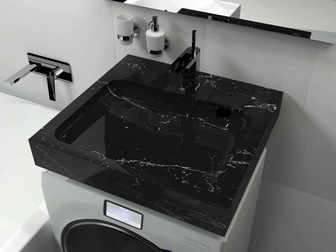 Купить Раковина над стиральной машиной Star 55 Черный мрамор, с кронштейнами и сифоном в комплекте