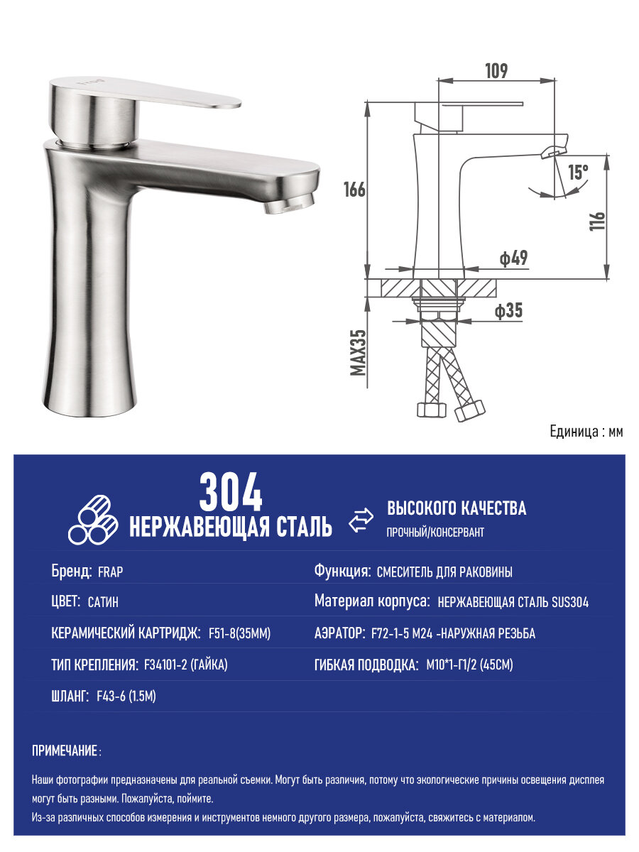 Смеситель для раковины Frap F1048 сатин интересное: